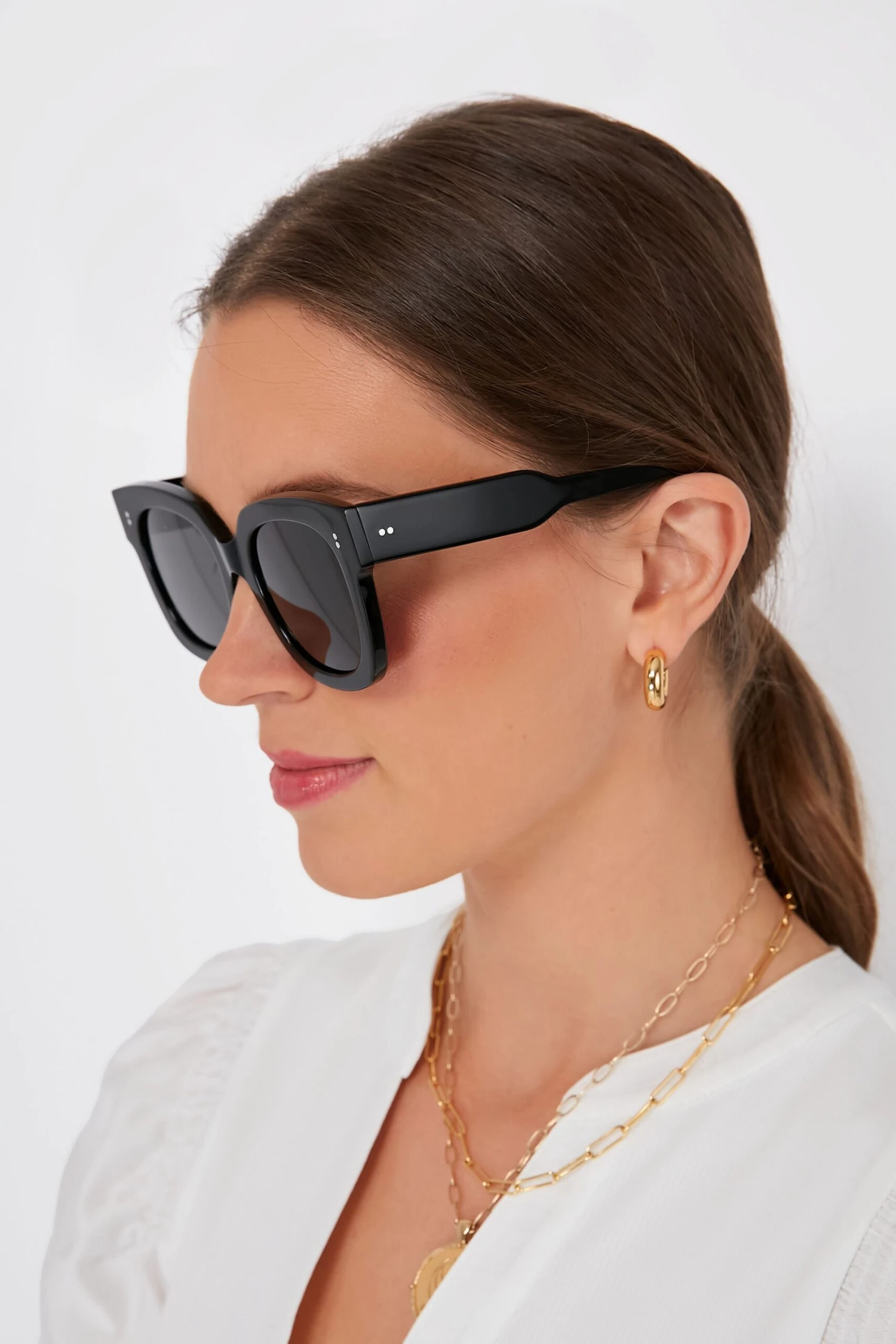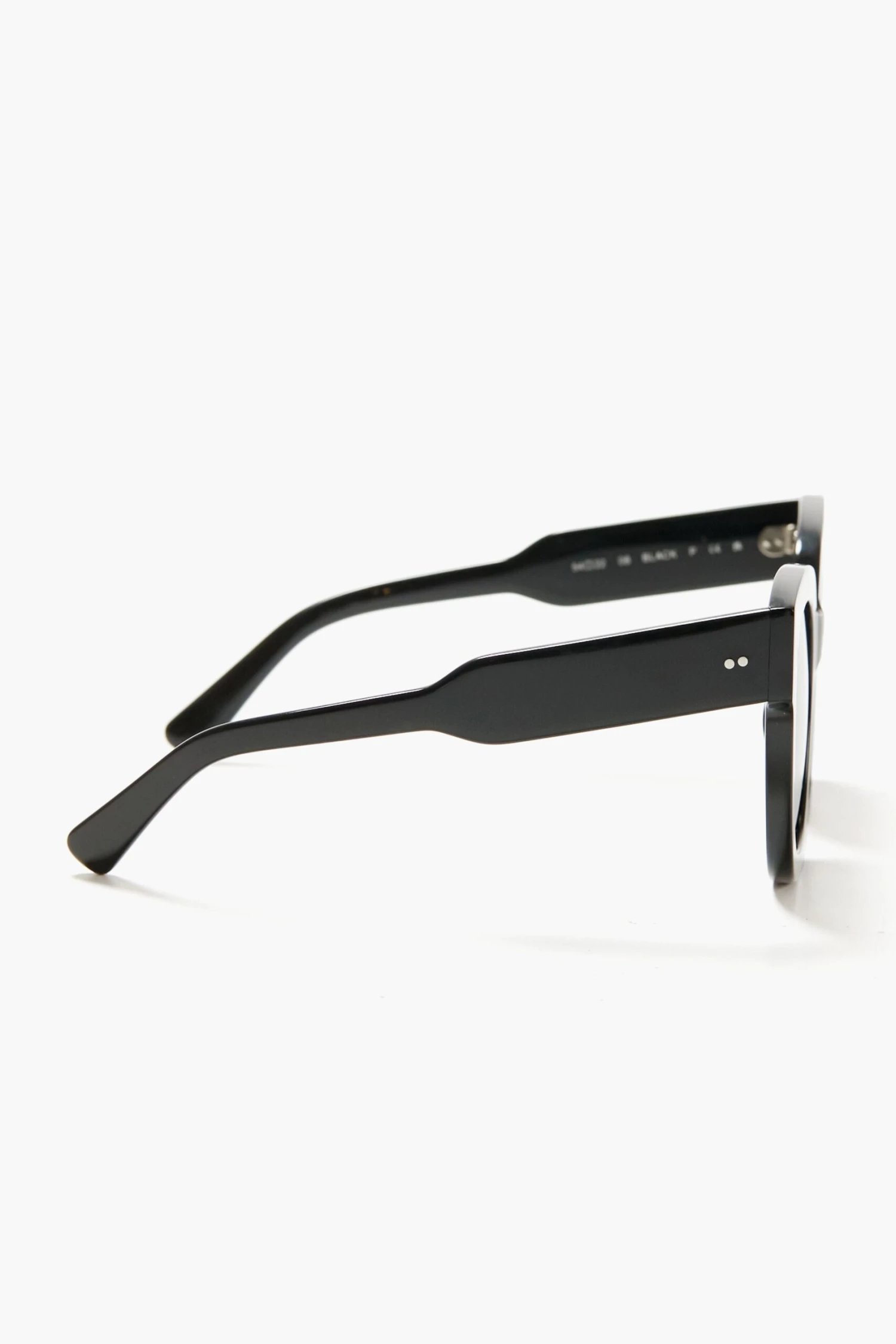 The 08 Black Sunglasses will have you feeling like an it-girl with their glamorously oversized square frames. They are handcrafted from premium Italian acetate with semi-flat lenses and finished with silver-tone hardware rivets and the CHIMI logo engraved at the temples. Easy to wear all year long from maxi dresses to chunky sweaters, we are constantly reaching for these sunnies.Â
