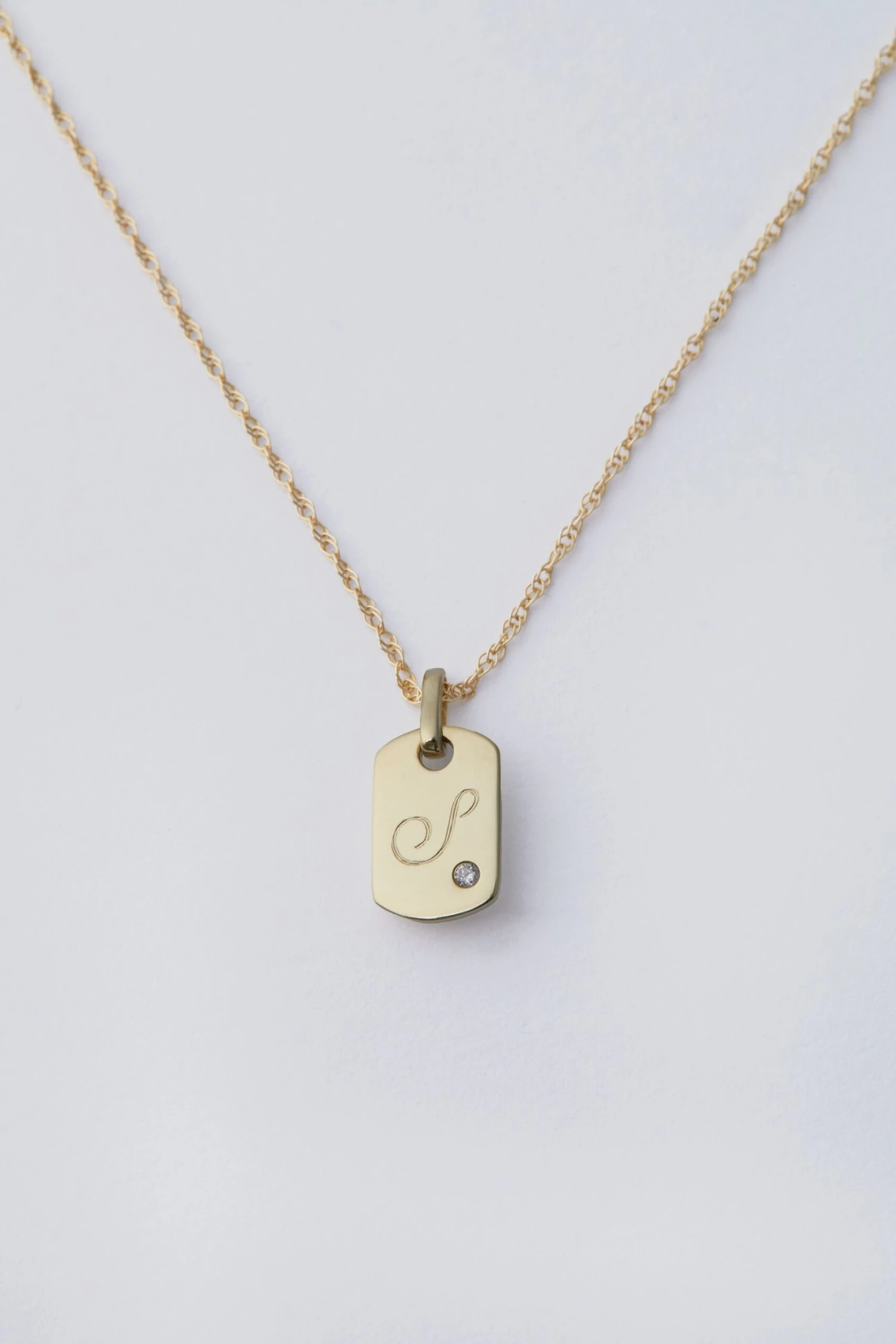 The 14k Gold Diamond Dog Tag Charm is an elegant and timeless charm that can be worn everyday. Made from yellow gold with a luxe diamond detail, you can add your initials or those of a loved one to create a cherished display that will be passed down and loved for generations to come.Â