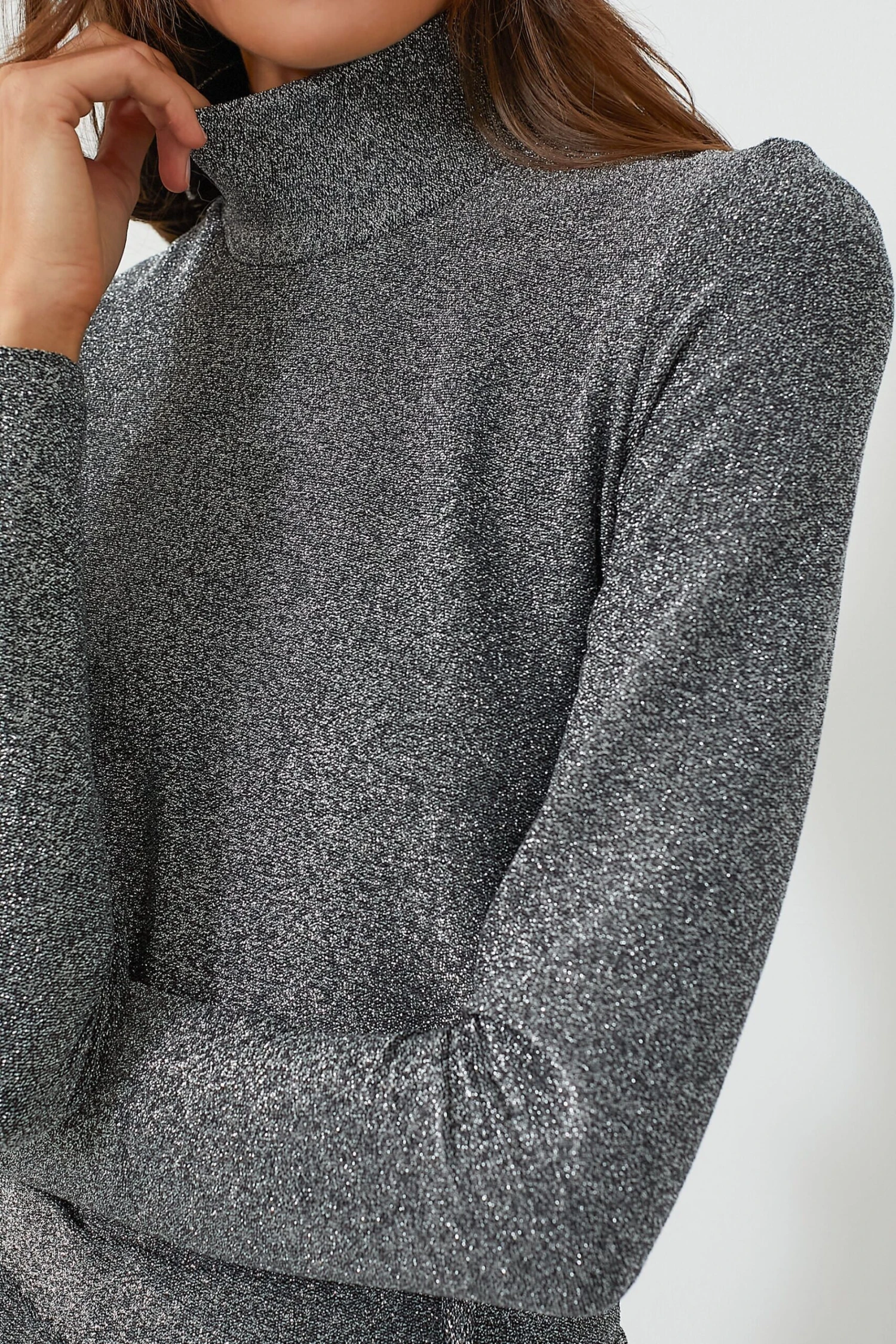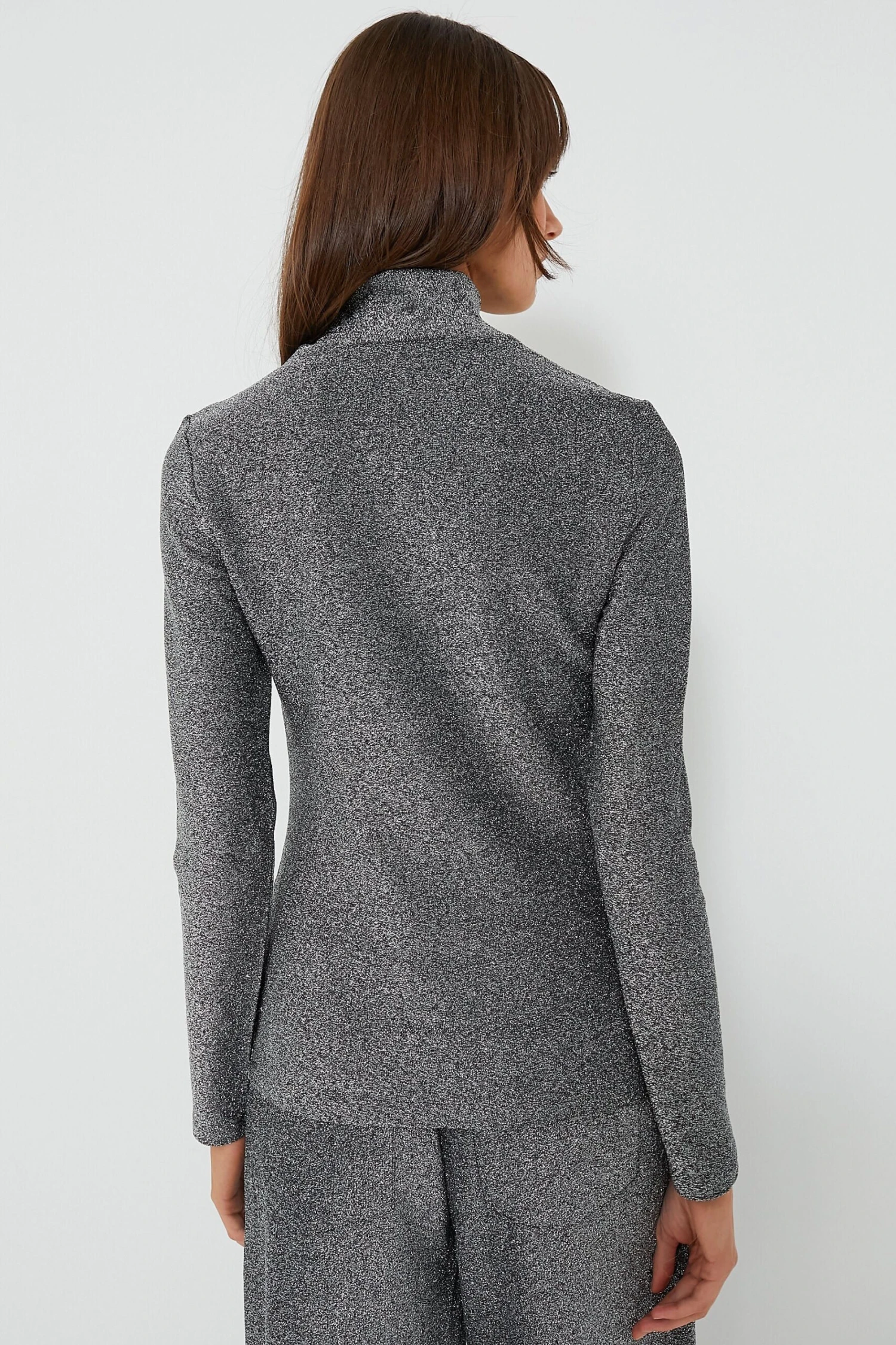 Shimmer and shine this season in the Gray Jacka Turtleneck. In a luxe metallic stretch fabric, this fitted silhouette can be worn for both casual and formal occasions. Style this versatile number with jeans and boots for a chic elevated weekend outfit, or dress it up with a skirt and heels for a sophisticated evening ensemble.
