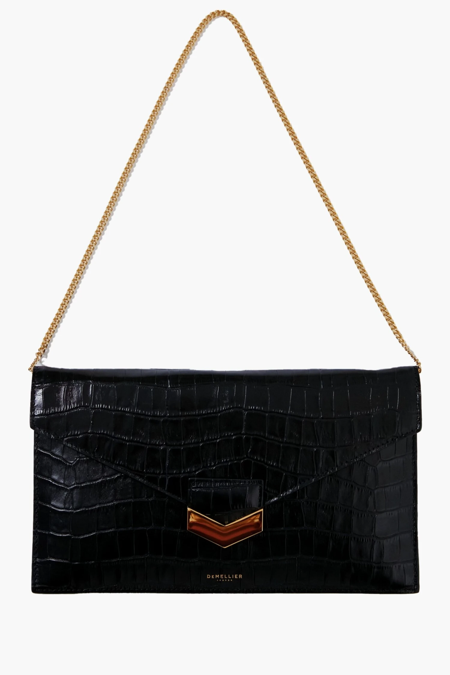 Go hands-free with the Black Croc London Clutch. The perfect addition to any occasion look, or just when you feel like traveling light, this little bag features a detachable shoulder chain, a magnetic closure flap top, and sleek gold hardware that make it classic and effortless. Versatile enough to be worn with denim and a chic blouse for romantic date nights, or with an elegant dress for evening soirees, this style is sure to be on heavy rotation.
