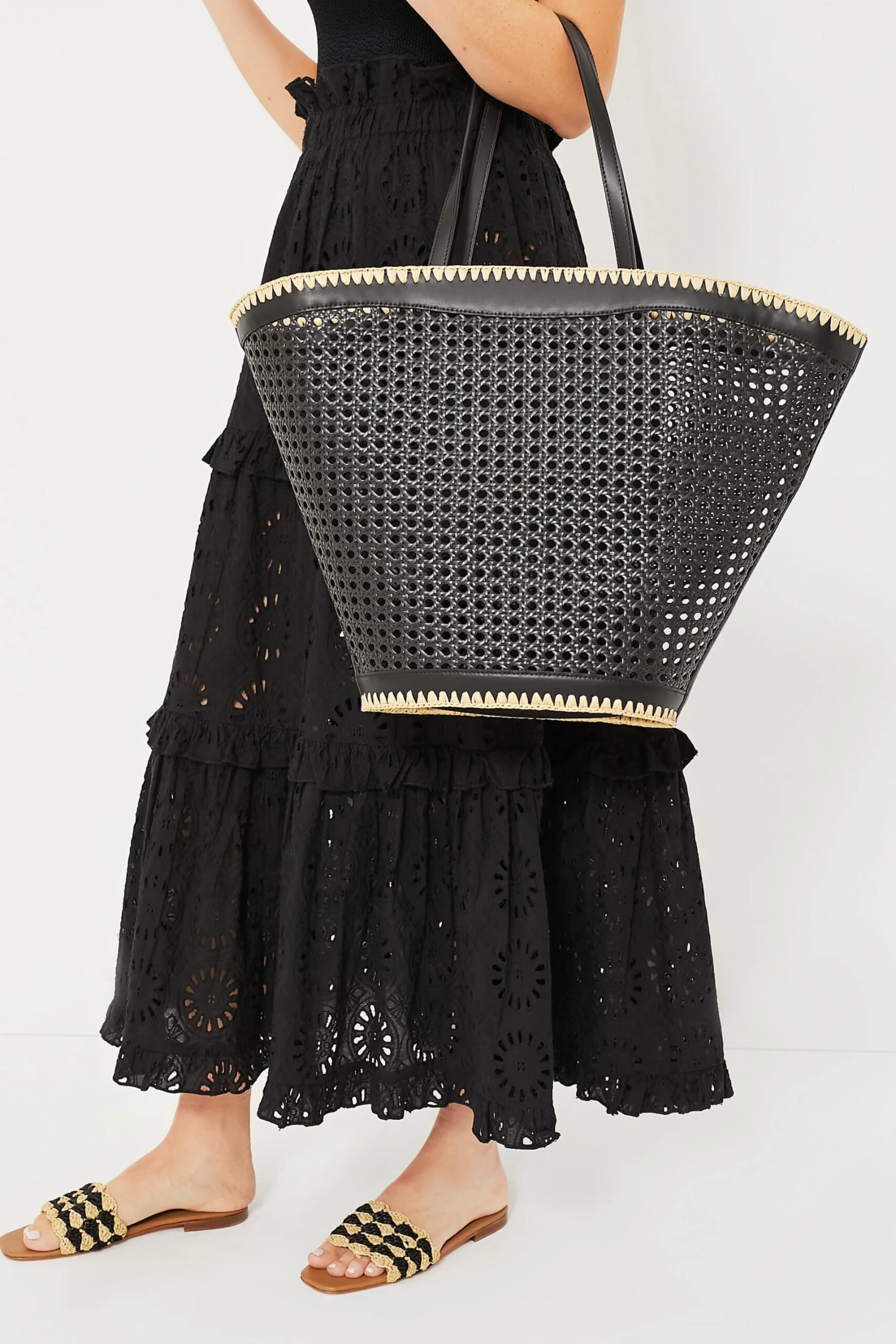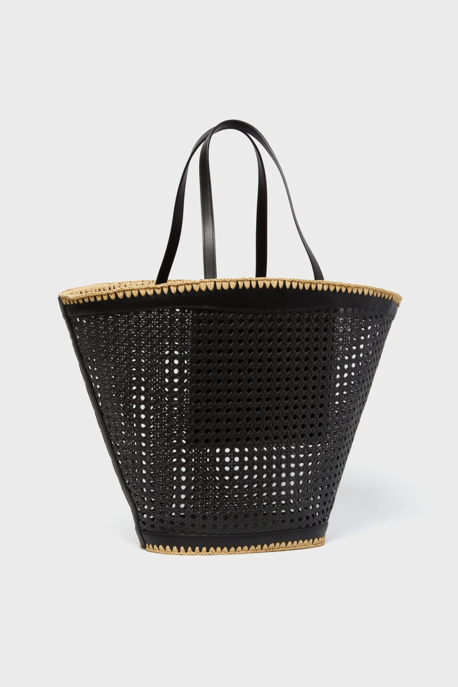 Whether you are going to the office or to brunch with the girls, the Black Ellie Tote perfectly completes any outfit. Crafted by skilled artisans, this bag is complete with a spacious woven body and leather top handles for a carry-all style that will never let you down.Â