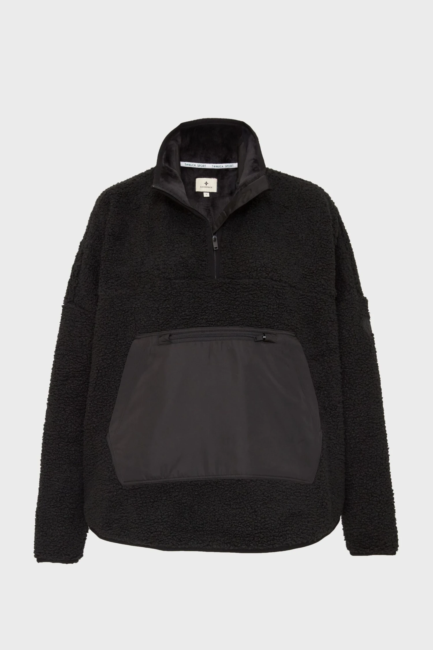 Super soft teddy fleece fabric meets functional style for the ultimate throw on and go number. The Black Fleece Cady Quarter Zip is designed with a half zip and wind flap for added protection against cold weather and an additional patch pocket on top of a kangaroo pocket that makes for easy hands free hiking and adventures.Â