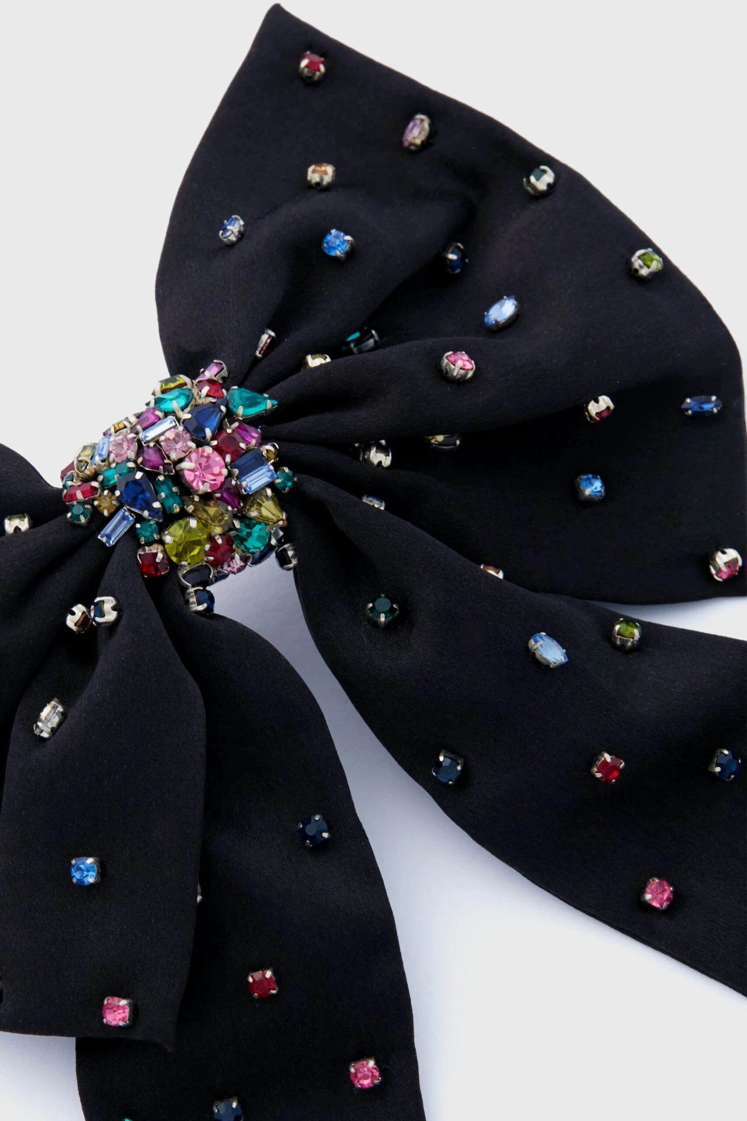 There’s no sweeter way to style your hair than with the Black Grace Bow Hairclip. Made from a luxe silk charmeuse fabric and adorned with glimmering multicolor crystals for a super fun touch, this clip is a special addition to any look — from crisp blouses to cozy sweaters to cocktail dresses. No matter how you pair it, we are sure you’ll be wearing it all season long.