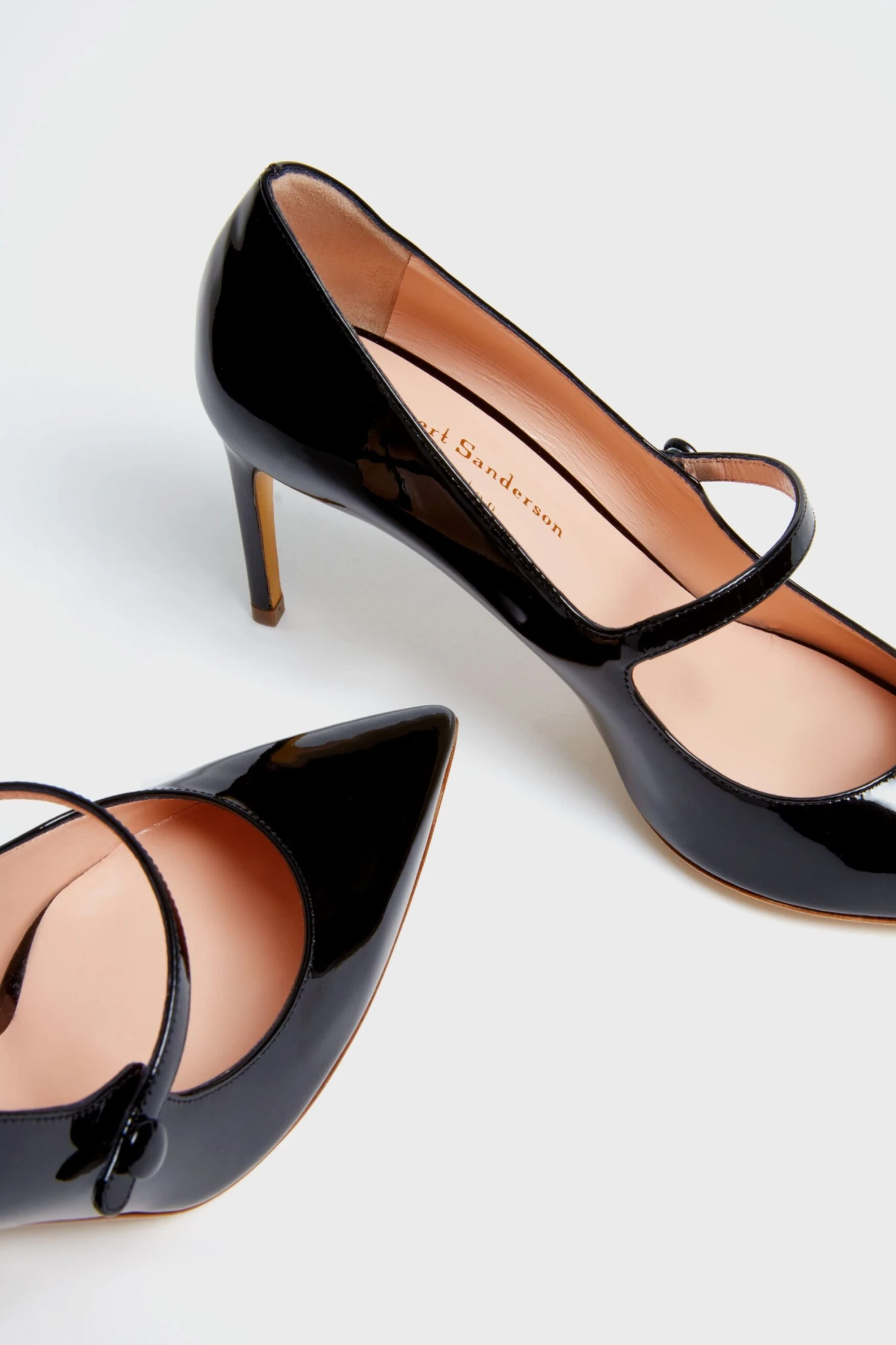 With a nod to girlhood, the Betty Mary Jane Heels are you favorite classic style upgraded to a mature high heel. In black patent leather, these shoes are guaranteed to be a year-round favorite. With a stiletto silhouette transformed with an arch strap and gold sole, these are just the right amount of classic, flirty, and modern. Pair with black trousers and a button down for a voguish office look, or with a LBD and gold jewelry for a night out on the town.Â