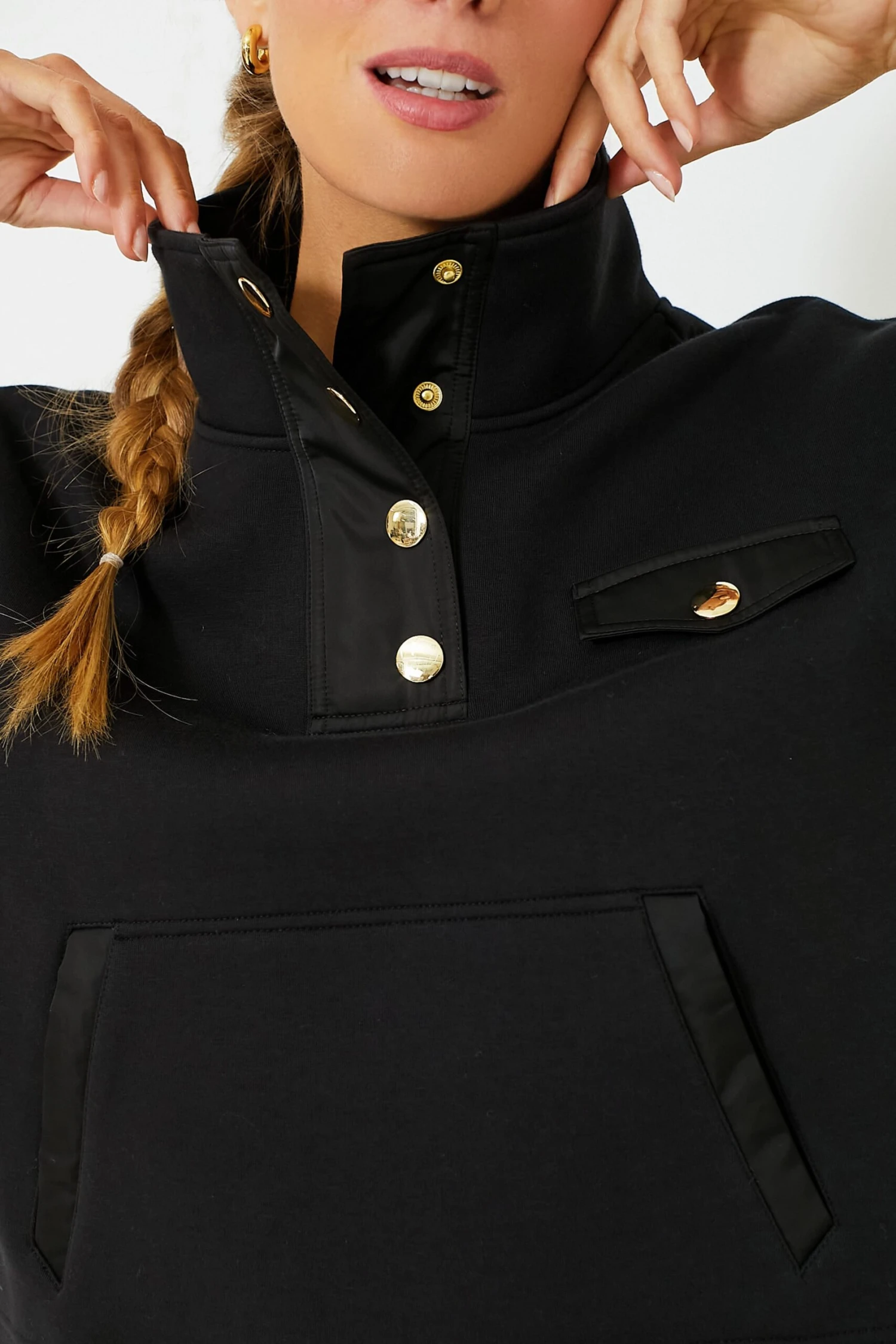 Taking the classic black hoodie and giving it a revamp, meet the Black Snap Neck Bailey Pullover– the outfit saver that gives any look an elevated, yet casual touch. Super soft to the touch, this sweatshirt was designed with all the thoughtful details in mind– a funnel neck for extra comfort and warmth, a kangaroo pocket to keep you hands-free, and gold snaps for added fun. Pair it with leggings for a quick coffee session after morning yoga, or skip the workout and opt for sweats as you couch surf on a lazy Sunday (we’ve all been there).Â