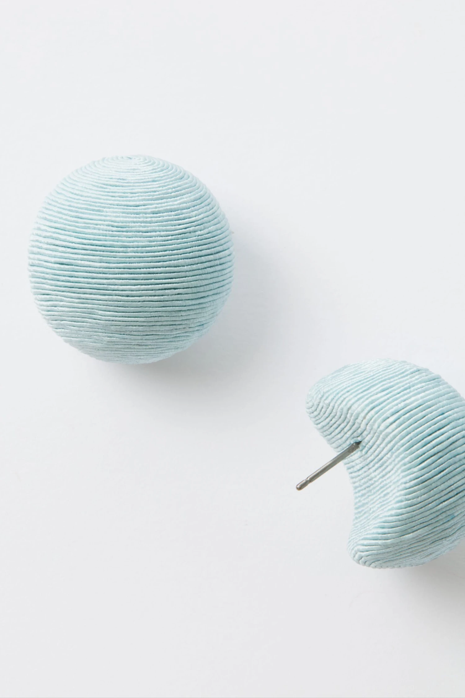 Our classic Casey Studs are back in a new silk design. A dramatic stud design in a cool blue color creates a perfectly elegant earring that will add a touch of fun to your outfits all year long. Pair with denim shorts and a white tee for a casual day out and about, or with a maxi dress and sandals for dinner with friends.Â