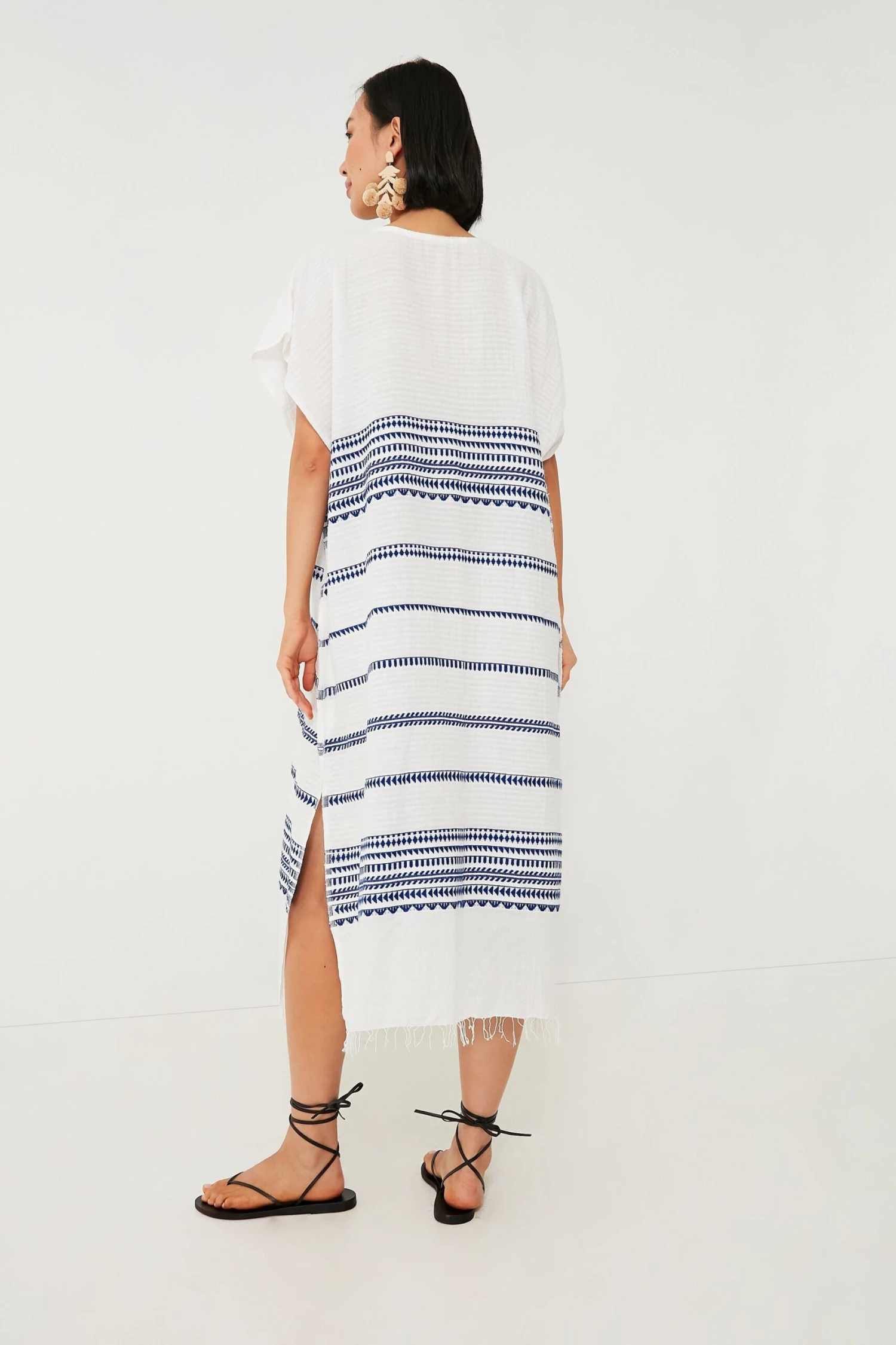 Simple yet sophisticated, we are taking the Blue Yani Classic Caftan with us on beach days, tropical getaways, and girls weekends this season! Handmade from traditional Ethiopian tibeb cloth, this midi silhouette with a notched neckline, batwing sleeves, and a fringed hem has you covered on even the sunniest, hottest days ahead. The flowy shape will float beautifully upon the ocean breeze and ensure you look and feel cool when you pair it with a sunhat and sandals for a day by the pool or a stroll on the sand.