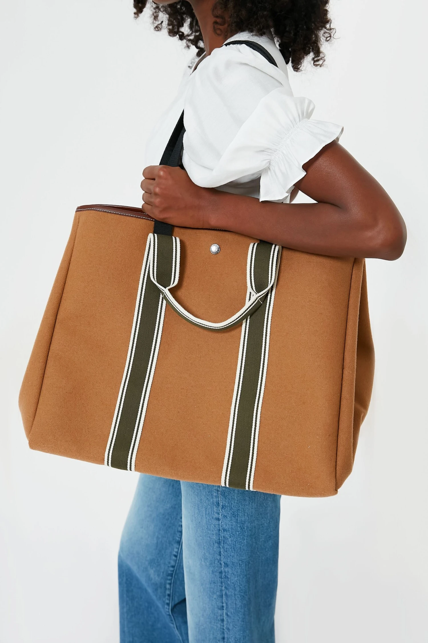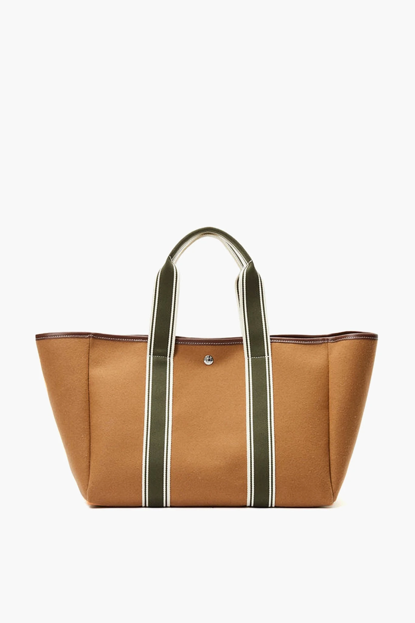 The Camel Traversée L Flannel Cruise Tote provides all of the space and style you need for an everyday work bag or for an upcoming weekend trip. Crafted from a luxe wool flannel with sturdy yet chic contrast top handles, this bag will stick with you for years to come. With silver hardware, you can wear this versatile style on your forearm or carry it by hand. Perfect for a quick getaway or a busy day running errands, this tote will make bustling around just that much easier.