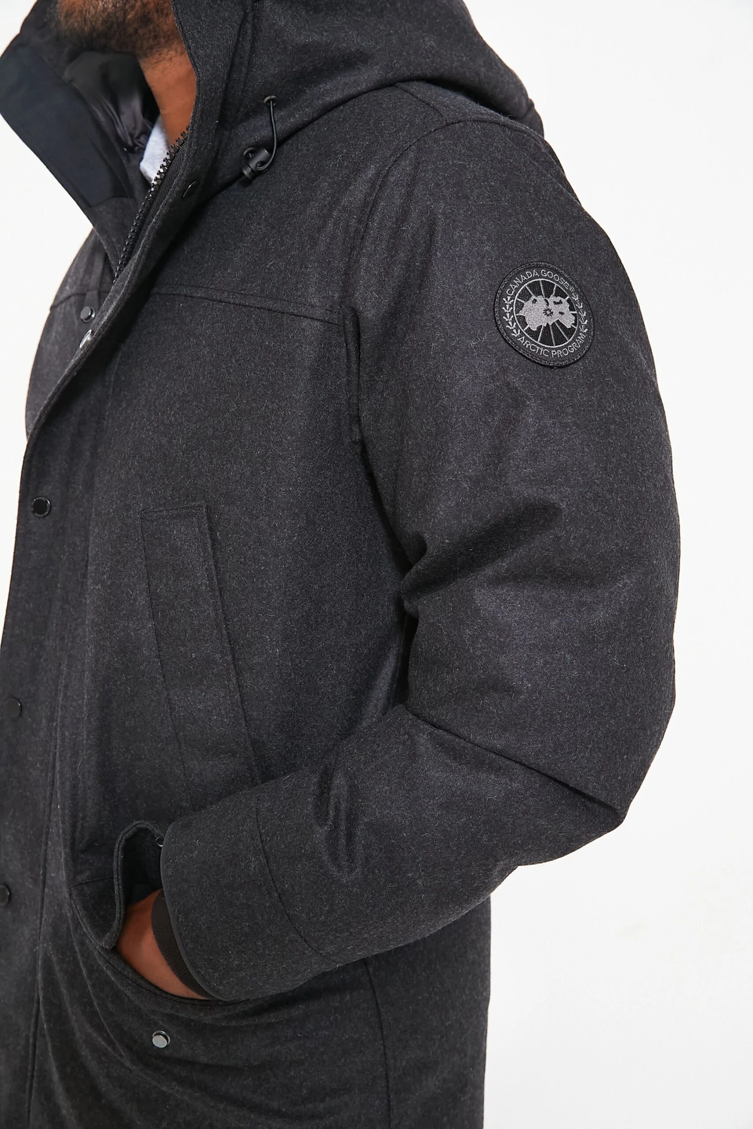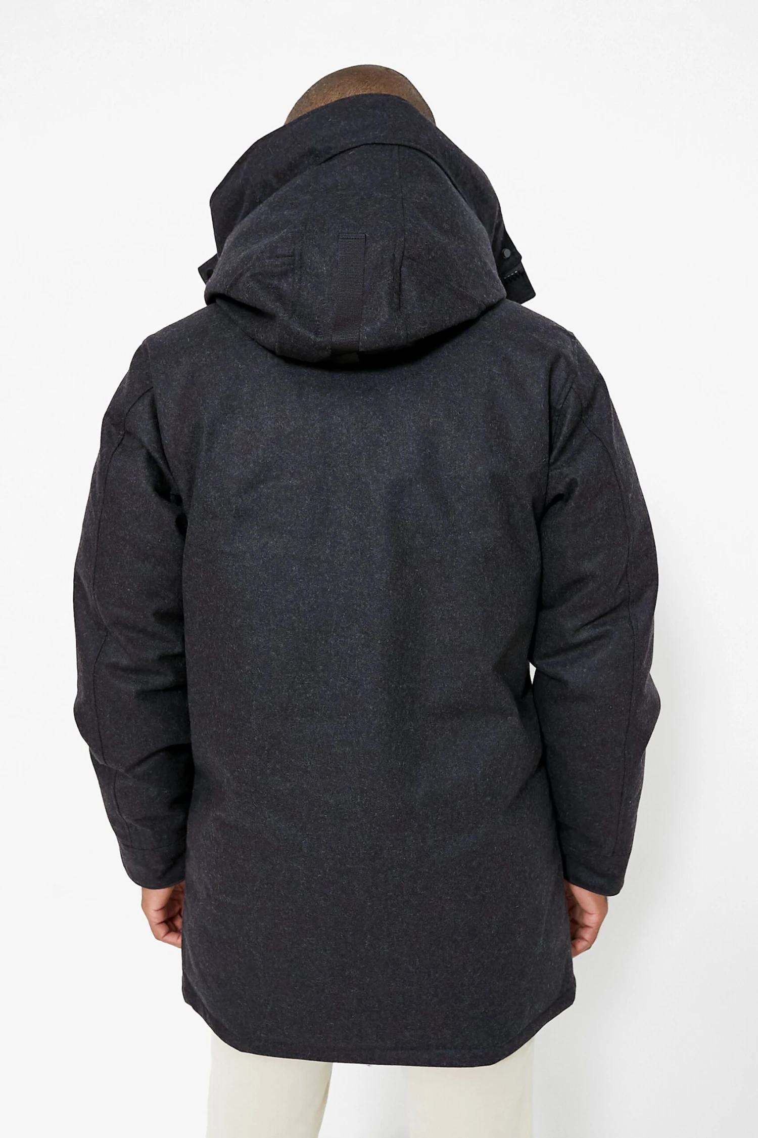 The Carbon Melange Wool Reskill Langford Parka offers clean lines and modern styling, all in an uncompromisingly protective silhouette. Made for the coldest of winter days, with 625 fill-power duck down that can keep you warm down to -13ºF, this jacket is sure to become your everyday go-to for a cozy feel and a cool look. An attached hood, ribbed cuffs, two sets of pockets, and a mid-thigh length for more coverage come together to create a epiece that feels as good as it looks. Add a beanie and your favorite denim for an easy outfit formula that works for weekend adventures, brunch meet-ups, and snowball fights alike.