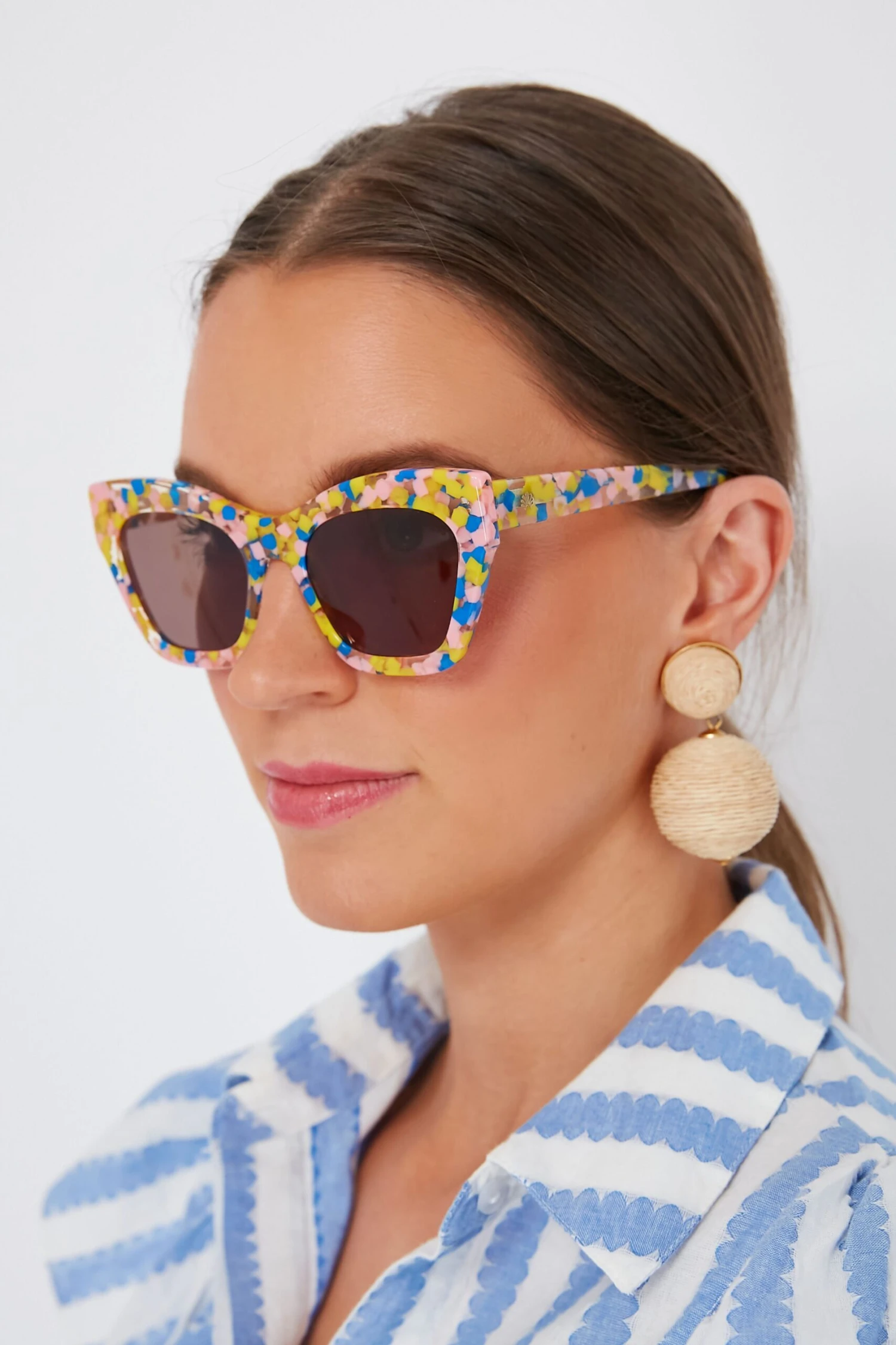 Add a pop to your outfit with the Canary Confetti Lido Sunglasses! These statement making stunners feature oversized lenses, yellow confetti frames, and temple tip cutouts that allow you to add a sunglass chain. Go for a “more is more” look and pair with a printed maxi or keep it casual and add a white tee with your favorite denim.