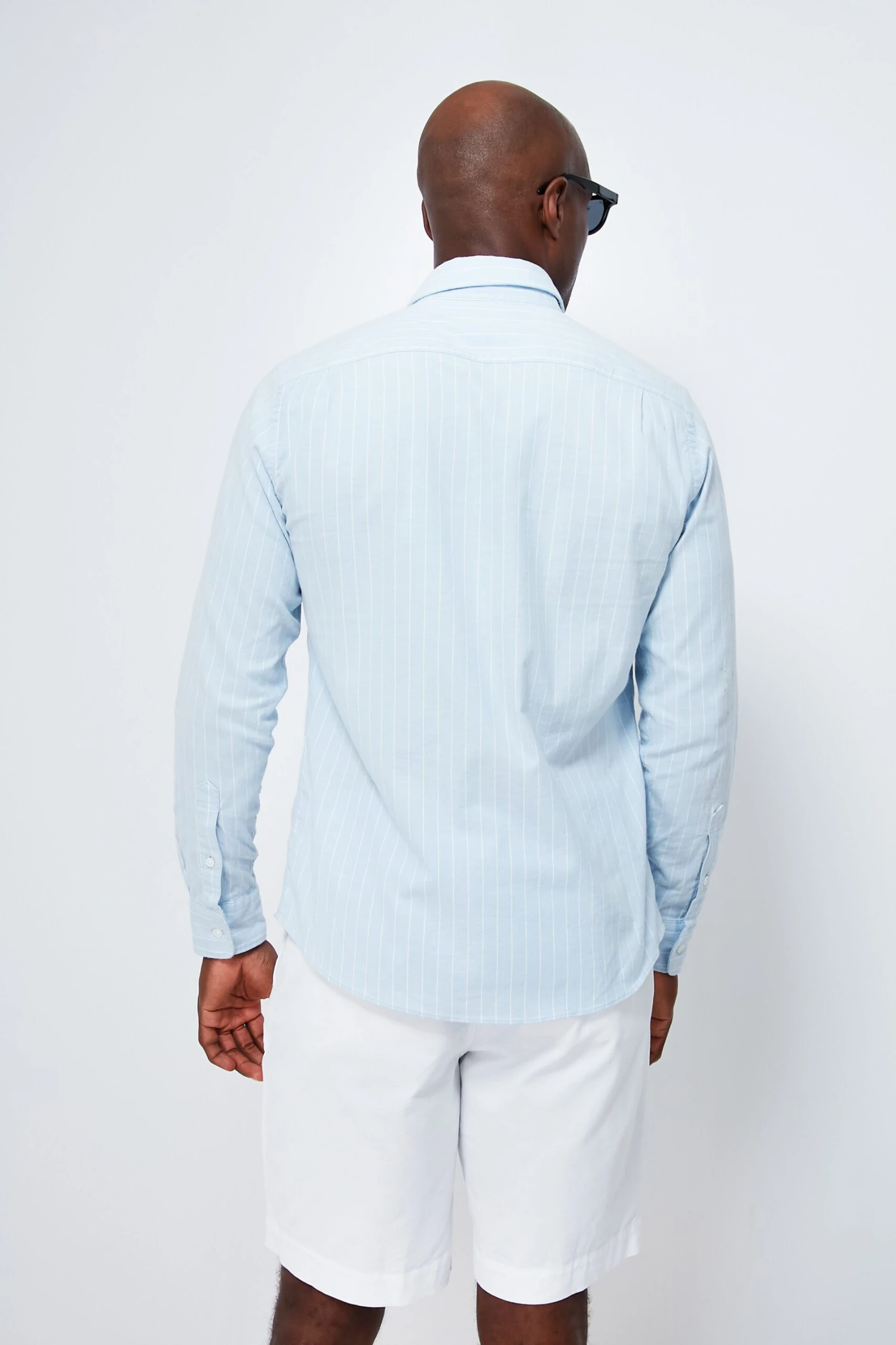 The Cloud Chalk Stripe Stretch Oxford Shirt is an everyday staple. Designed with soft heathered yarns and a bit of stretch to enhance comfort and wearability– this is one of the most versatile shirts you’ll own. With a midweight weave that’s airy and not too stiff, it’s ideal for the office, dinner, or any other occasion that calls for a little polish.
