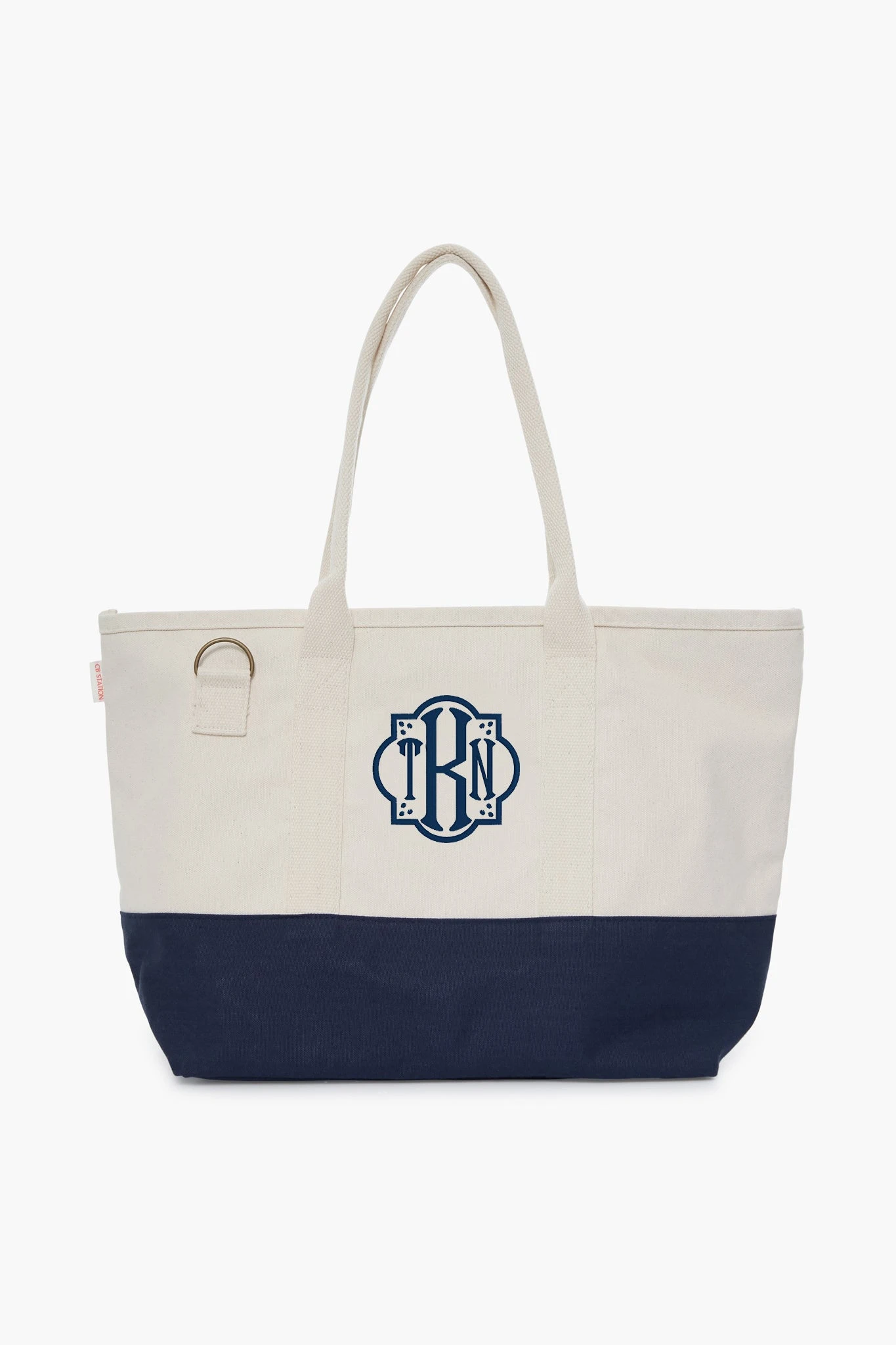 This versatile, heavy-duty cotton canvas bag with a zipper top is a classic choice for a weekend getaway, errands, baby gear, beach houses, and more.