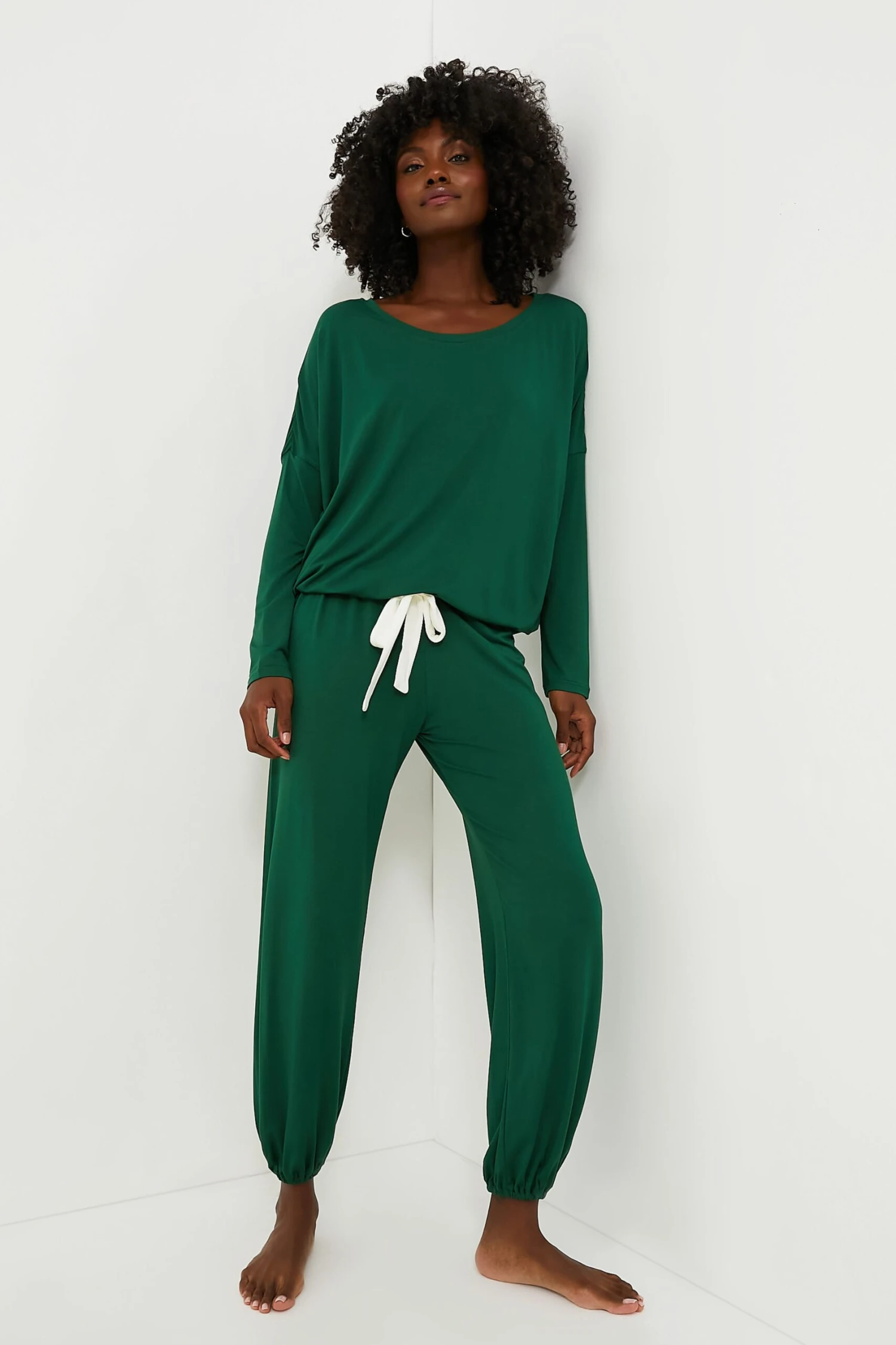 Made from a blend of super-soft modal jersey and a tailored fit, the Forest Green Slouchy Set is super cozy and relaxed so it falls in all the right places. A Tuckernuck favorite, these pajamas will instantly become your best at-home look yet. Plus, they are machine washable and gentle on skin, so they feel amazing and are easy to care for too. These are the chic yet comfy PJs you’ll want to live in, gift to everyone, and pack with you wherever you go.