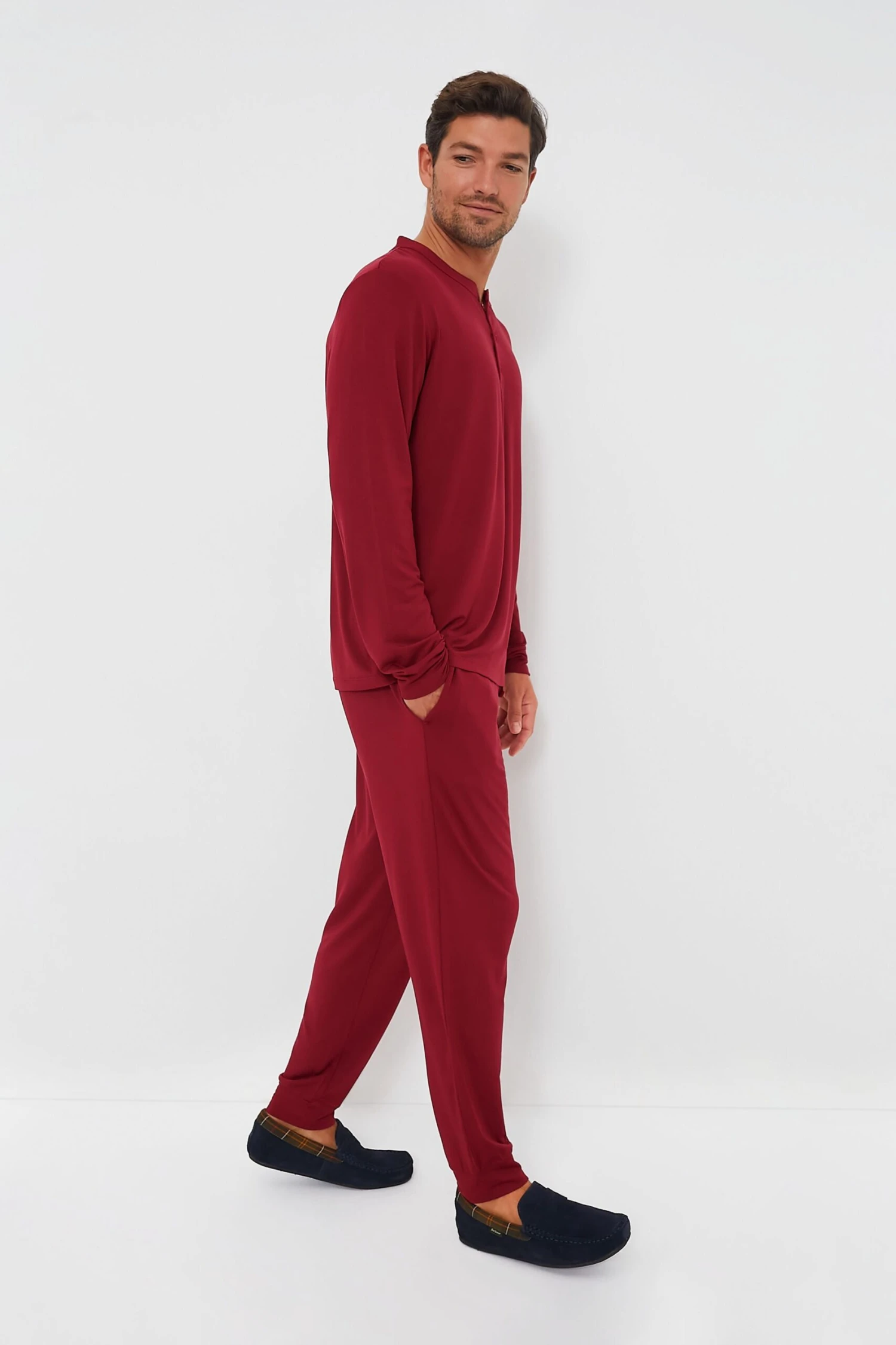 Give him a good night’s sleep, every night. Eberjey’s relaxing Sangria Henry Long PJ Set is cut from luxuriously soft and sustainable TENCEL™ Modal fabric. They’re designed to be breathable, long lasting and machine washable. The relaxed Henry styling combines the classic look of a henley top with casual jogger-style pants for pajamas he’ll want to live in. Not only does it offer all-day comfort at home, but it’s a cozy packing essential he’ll love to unwind in.