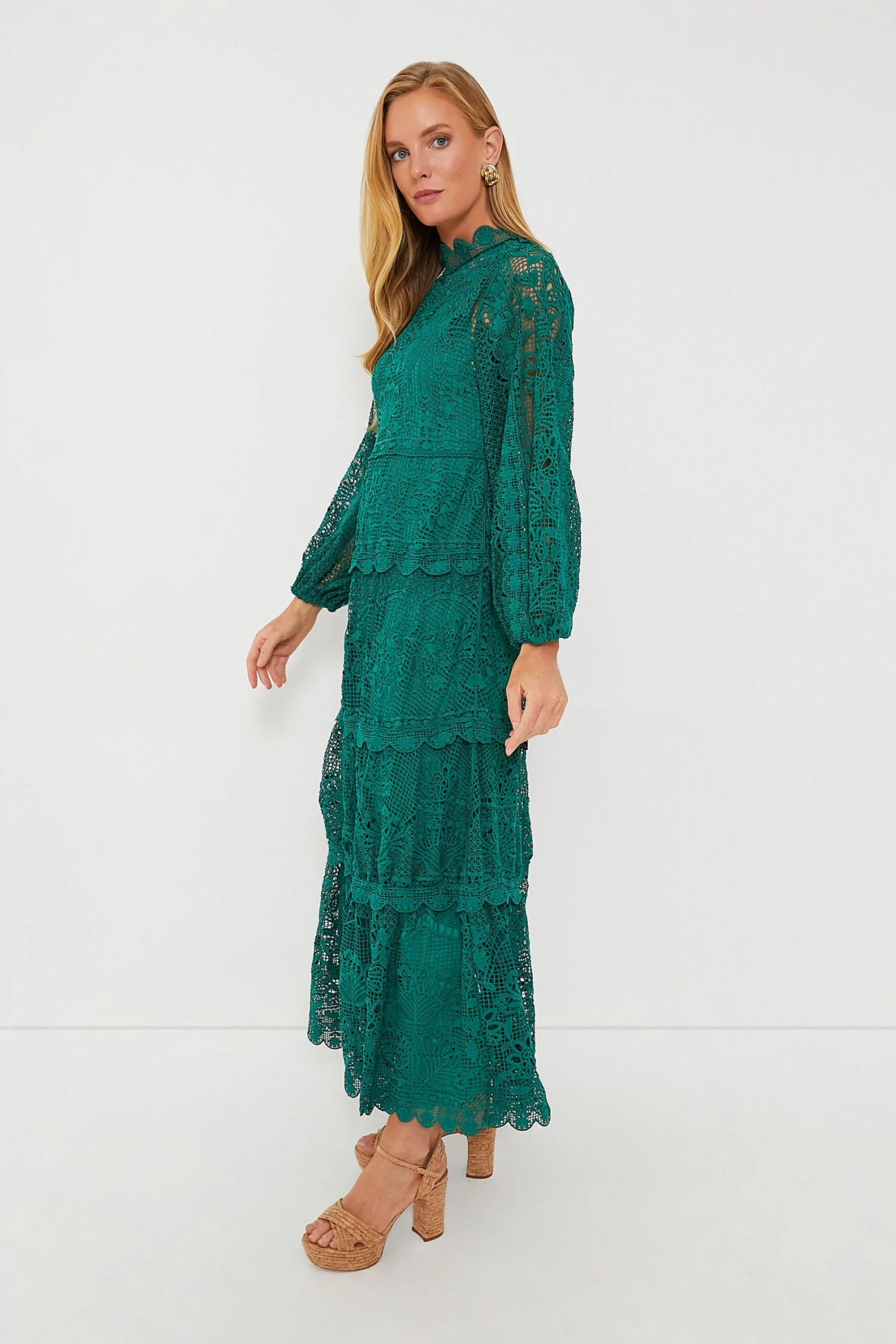 Once you fall for the Dark Green Long Sleeve Dress, you’ll always be in love! Cut from guipure lace that’s beautifully patterned with delicate flowers and scalloped along the edges, this maxi features blouson sleeves, a flowing tiered skirt and a tonal slip providing the perfect amount of coverage. Turn all moments into memorable occasions, from wedding celebrations to happy hours at the beach, just add heels or sandals for a jaw-dropping look.Â
