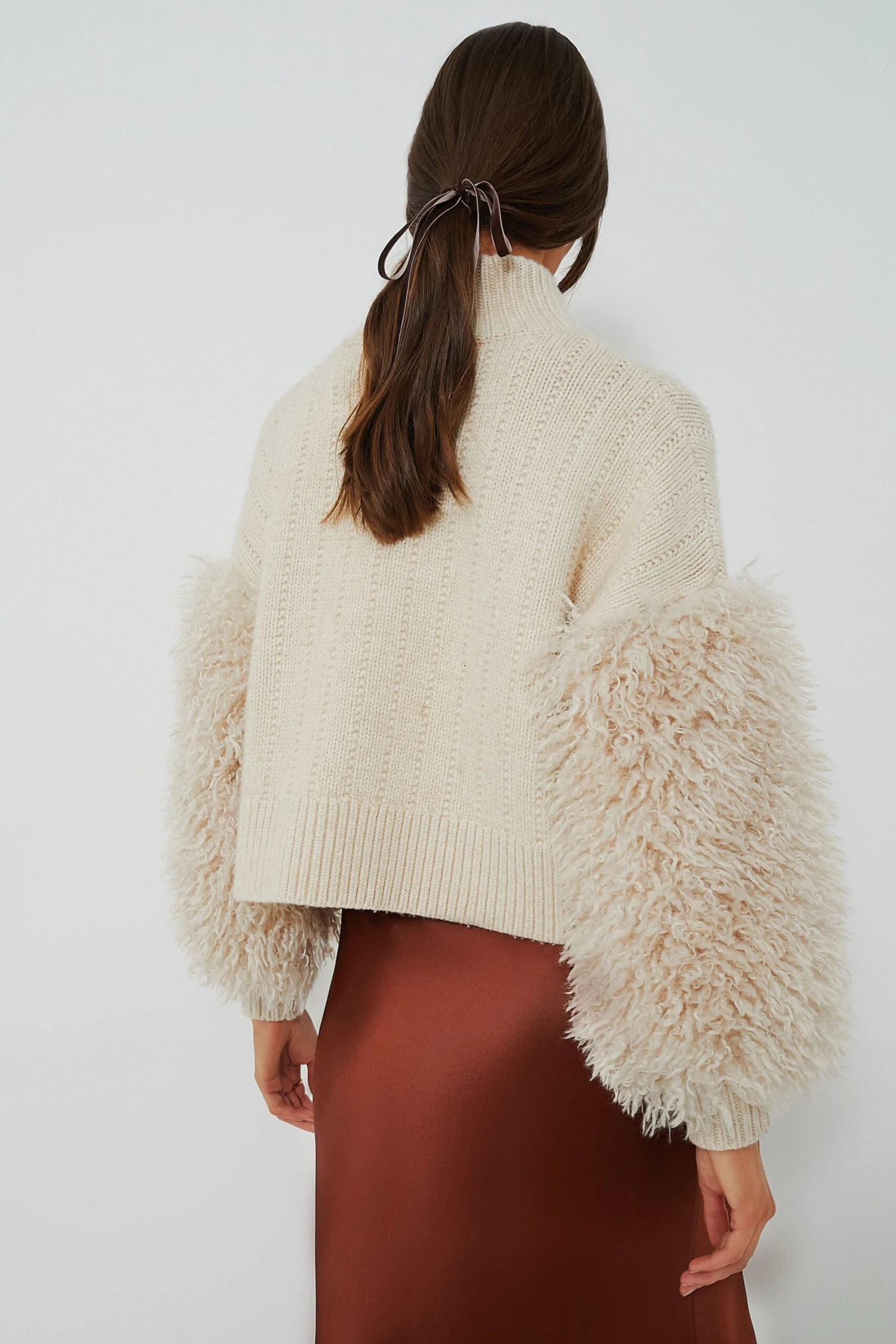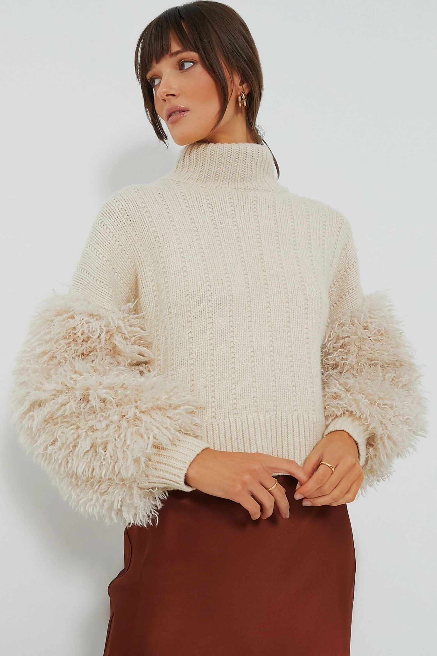 Make a statement in the Faux Fur Turtleneck, an elegant combination of a classic silhouette and a playful exaggerated long sleeves. Made from the finest chunky yarn in a neutral colorway that pairs well with everything from denim to skirts, this luxe knit will take you from daytime dressing to elevated evening with a simple switch of accessories.Â