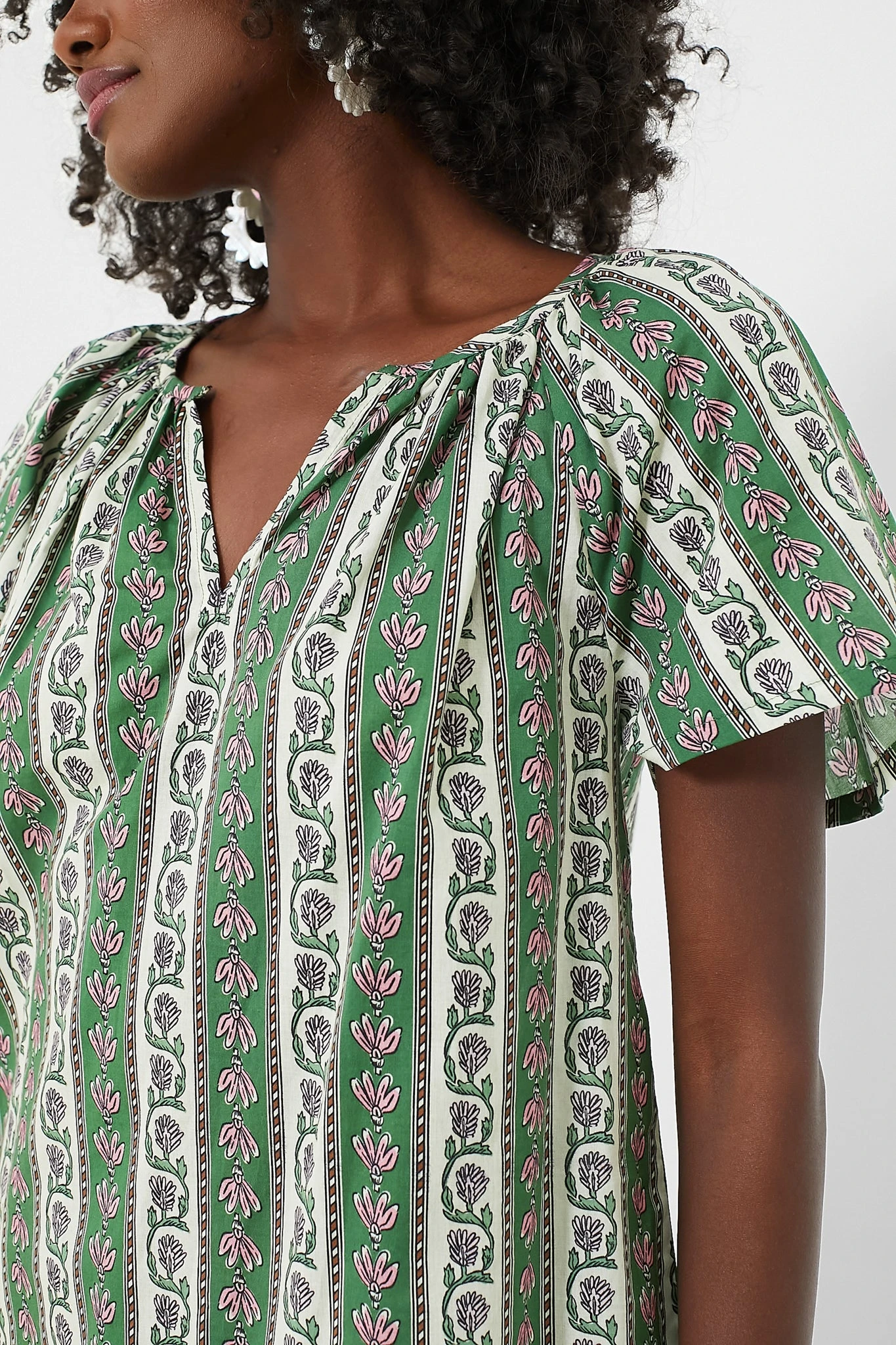 Perfect for summer picnics or spring coffee dates, the Fern and Floral Stripe Elena Top is an adorable style that is incredibly versatile. This top boasts a V-neckline, short flutter sleeves, and an eye-catching floral pattern. Wear with denim and sneakers, or with the matching Fern and Floral Stripe Jolie Shorts for a show-stopping set.Â