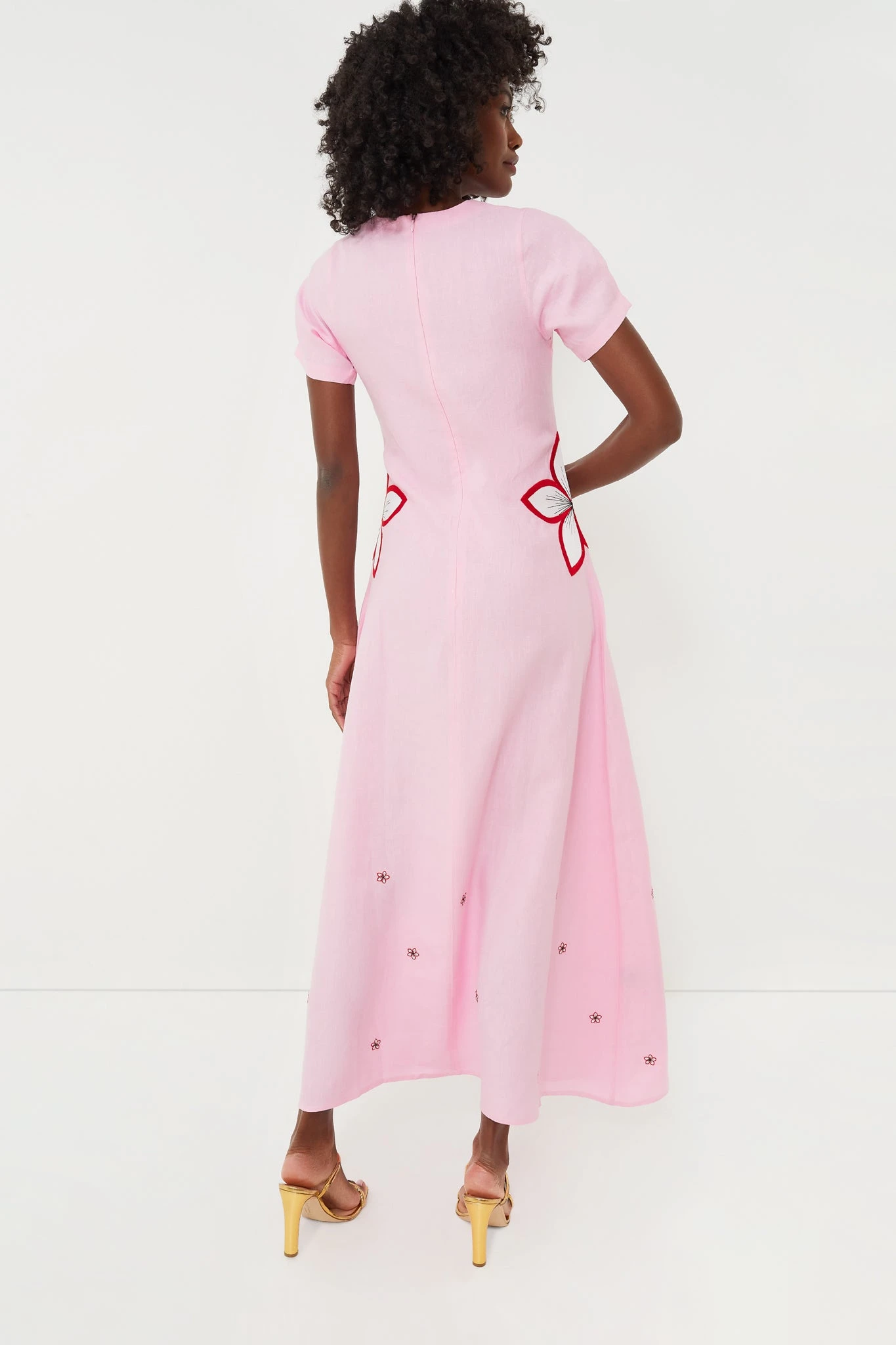 Pretty in Pink! The Fondant Kandra Dress is sure to turn heads.Featuring an A-line silhouette, this maxi boasts a round neck, short sleeves, and floral embellishment on side waist and hem, this stunner is going to have you look and feel extra-special. Style with heels and sunnies for a sunday brunch with your gals, or elevate it with heels and statement earrings for a seaside wedding or al fresco dinner date!