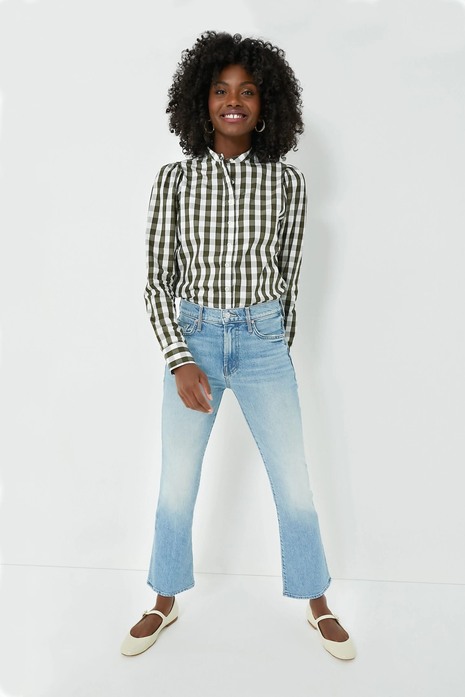 For business or pleasure, the Forest Puffed Shoulder Shirt is shapely in all the right places with subtle gathering at the shoulders and stand collar. Featuring long sleeves, a front button placket, and No Gape® button technology, this silhouette has got you covered (literally!). Beautifully made from a checkered cotton and produced in Portugal, we are styling this piece with flared denim, ballet flats, and a tote for the perfect desk to drinks look.