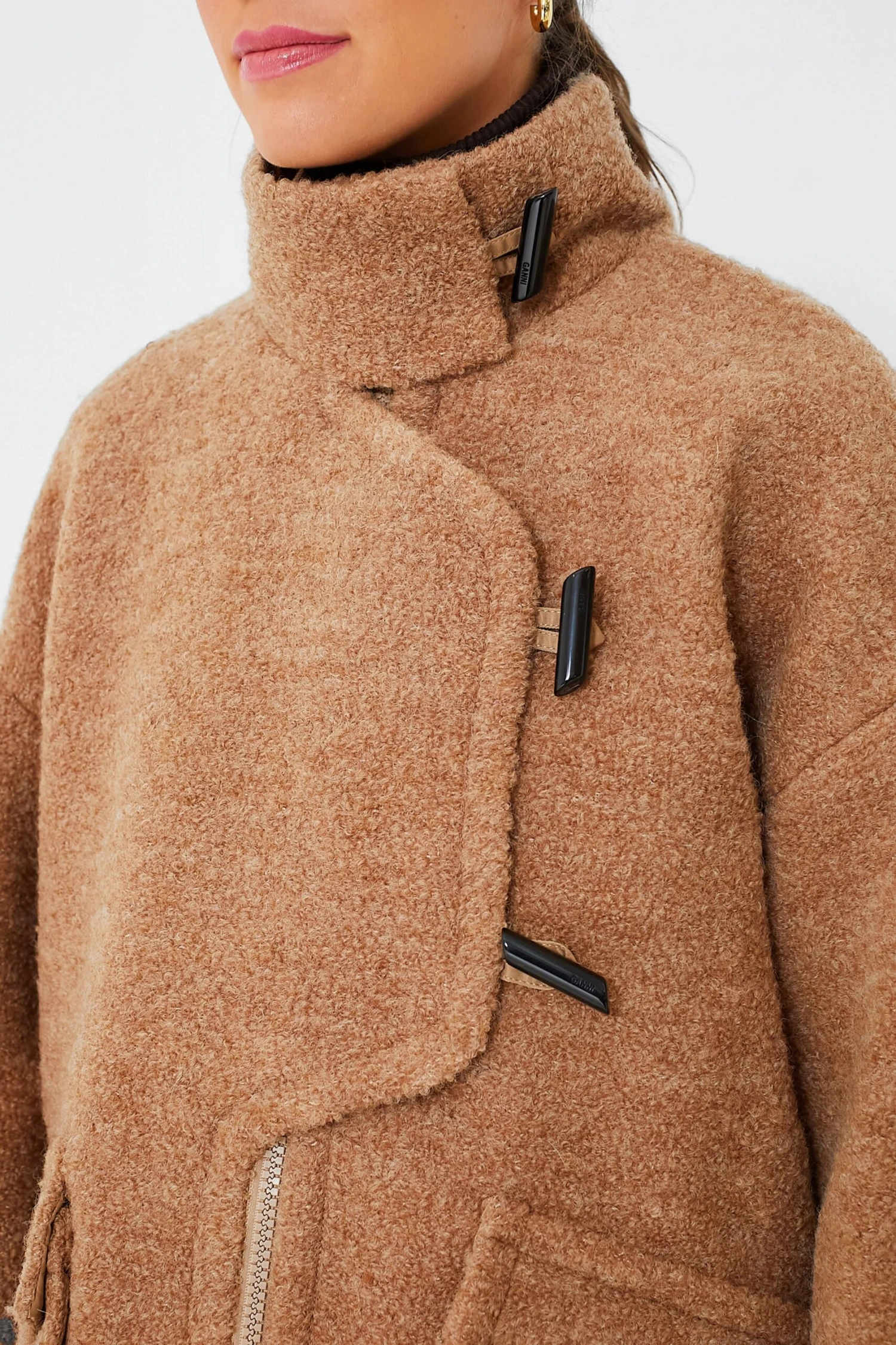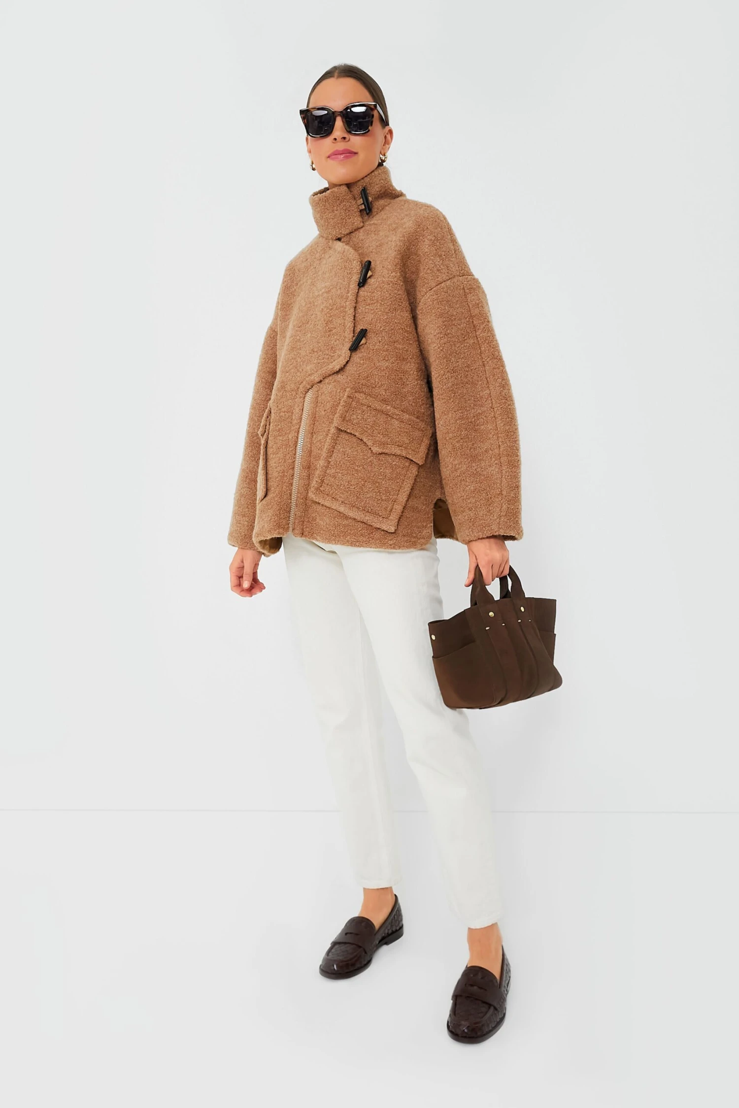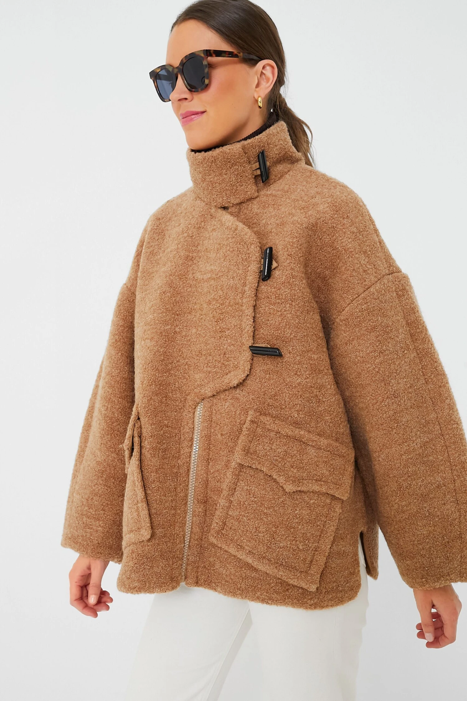 Taking your look up a notch is effortless when you have the Tiger’s Eye Boucle Wool Jacket. Crafted from heavyweight, textured soft recycled fabric, this layer is designed for an oversized fit and features dropped shoulders, toggle buttons, asymmetrical closing and patch pockets with a snap button closure. Throw on over any of your ‘fits for an upgraded vibe!