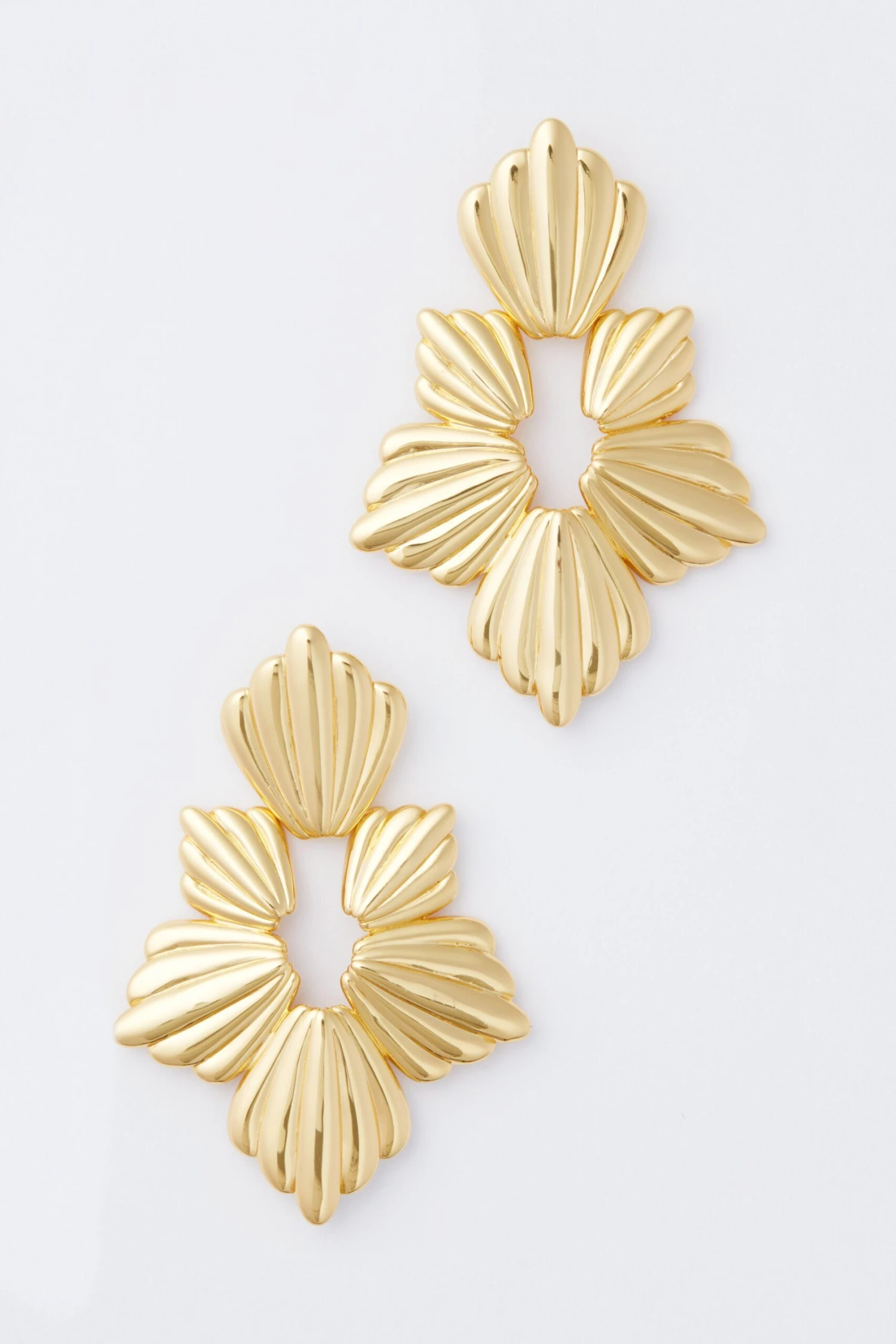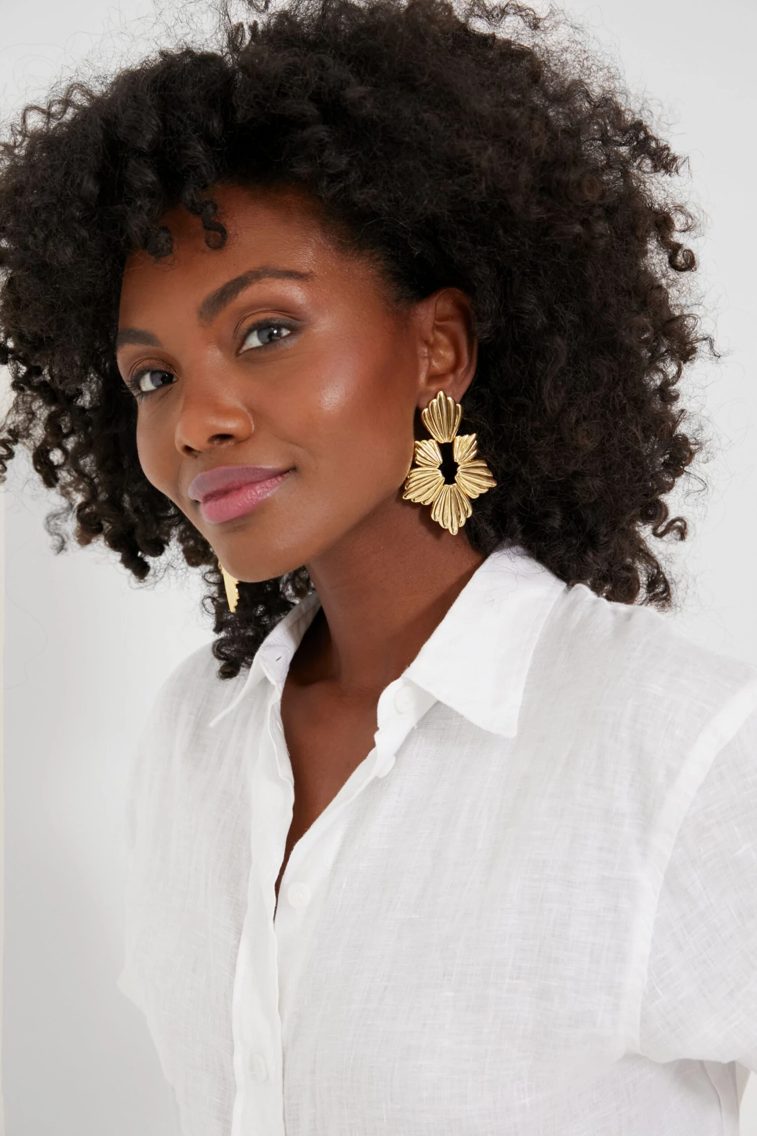 Fixed to the top stud but still allows for movement, the Gold Josie Earrings will shine with you all day long. The geometric floral shape is unexpected and luxe, adding a unique touch of glamour to your look. Wear them to the office with a button-down and trousers and add them event wear for all your RSVPs this season.Â