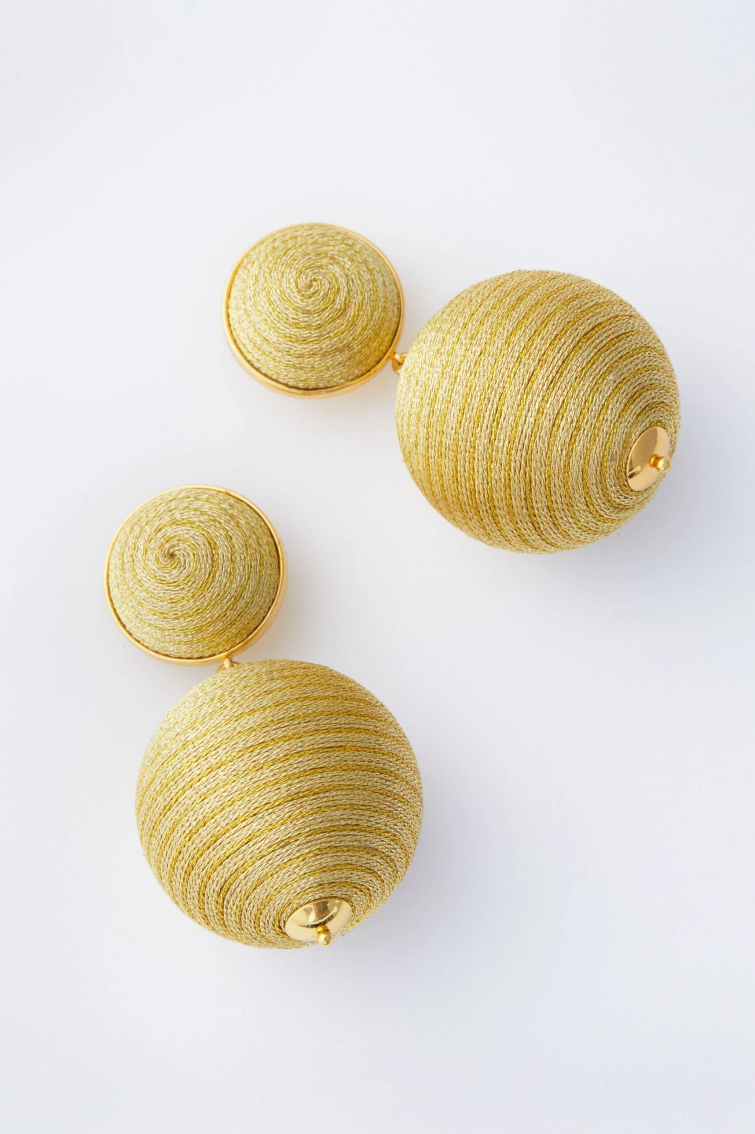 Bold, beautiful, and angelic describe the Woven Lantern Earrings. The gold creates a luminescence that will radiate no matter the occasion. We are pairing these with a silk maxi dress to create a Greek Goddess-inspired ensemble.Â