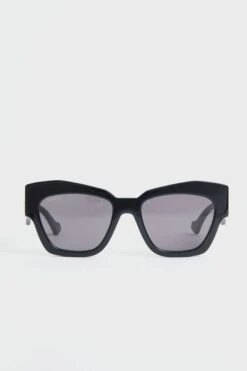 These Rectangle Sunglasses by Gucci are the perfect way to elevate your wardrobe. The subtle cat-eye shape, gray lens, and gold accents create a chic look that is sure to be your new go-to accessory. Wear with everything from a casual white button down to your favorite little black dress!