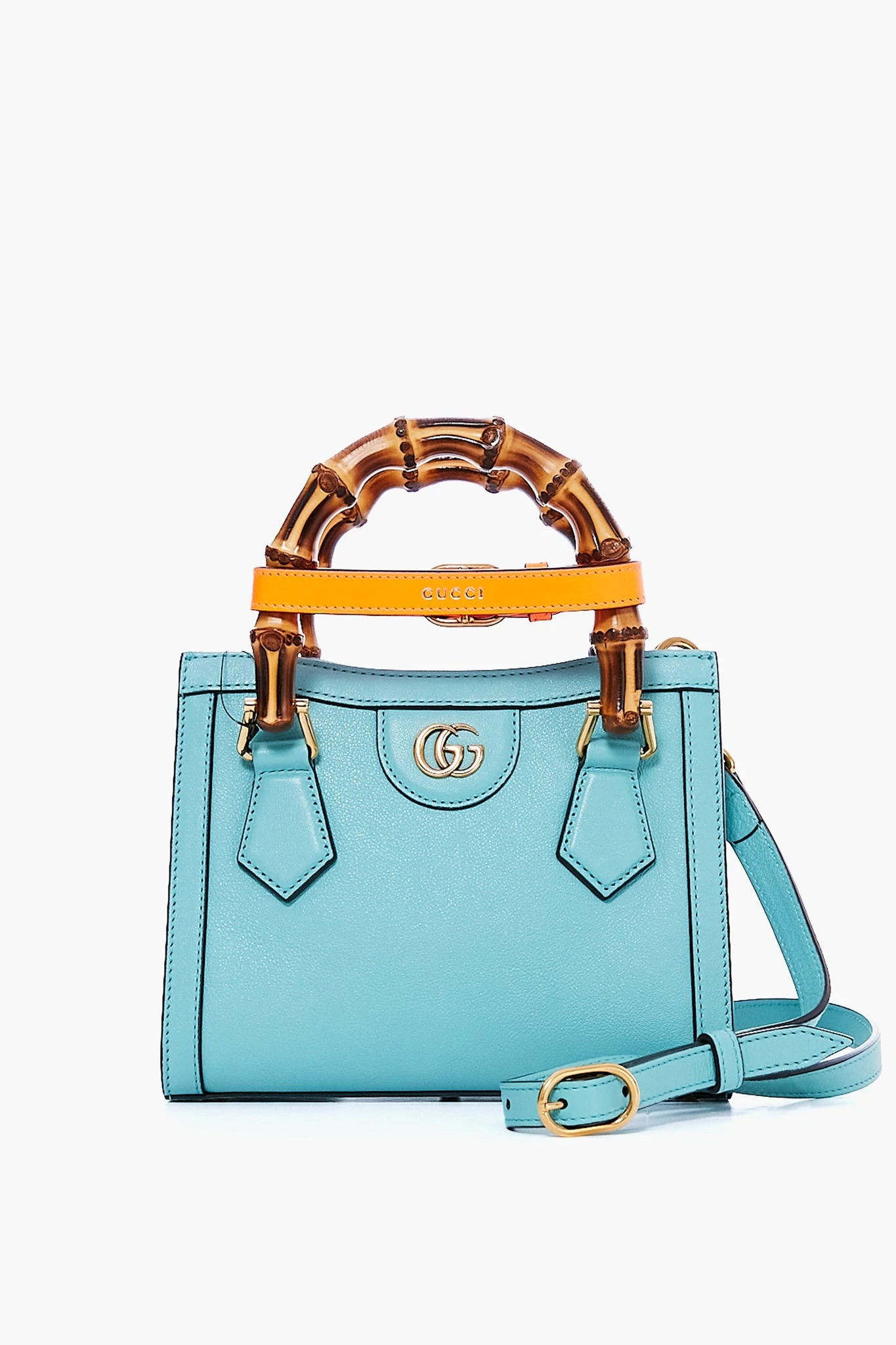 We’re all about style icons and their favorite pieces which is why we love the Gucci Light Blue Leather Diana Mini Tote Bag. Princess Diana’s favorite bamboo handle tote has been reimagined with a chic, bold update that we can’t get enough of. This modernized silhouette features a removable neon orange leather belt that is fastened around the top handles, paying homage to the functional bands of the ‘90s. With a bright blue structured body, famous overlapping gold GG logo, and of course, the bamboo handles, this tote is synonymous with glamor, elegance, and quintessential design. Lady Di’s influence on fashion will continue on and this bag is for the woman who appreciate’s those timeless elements.