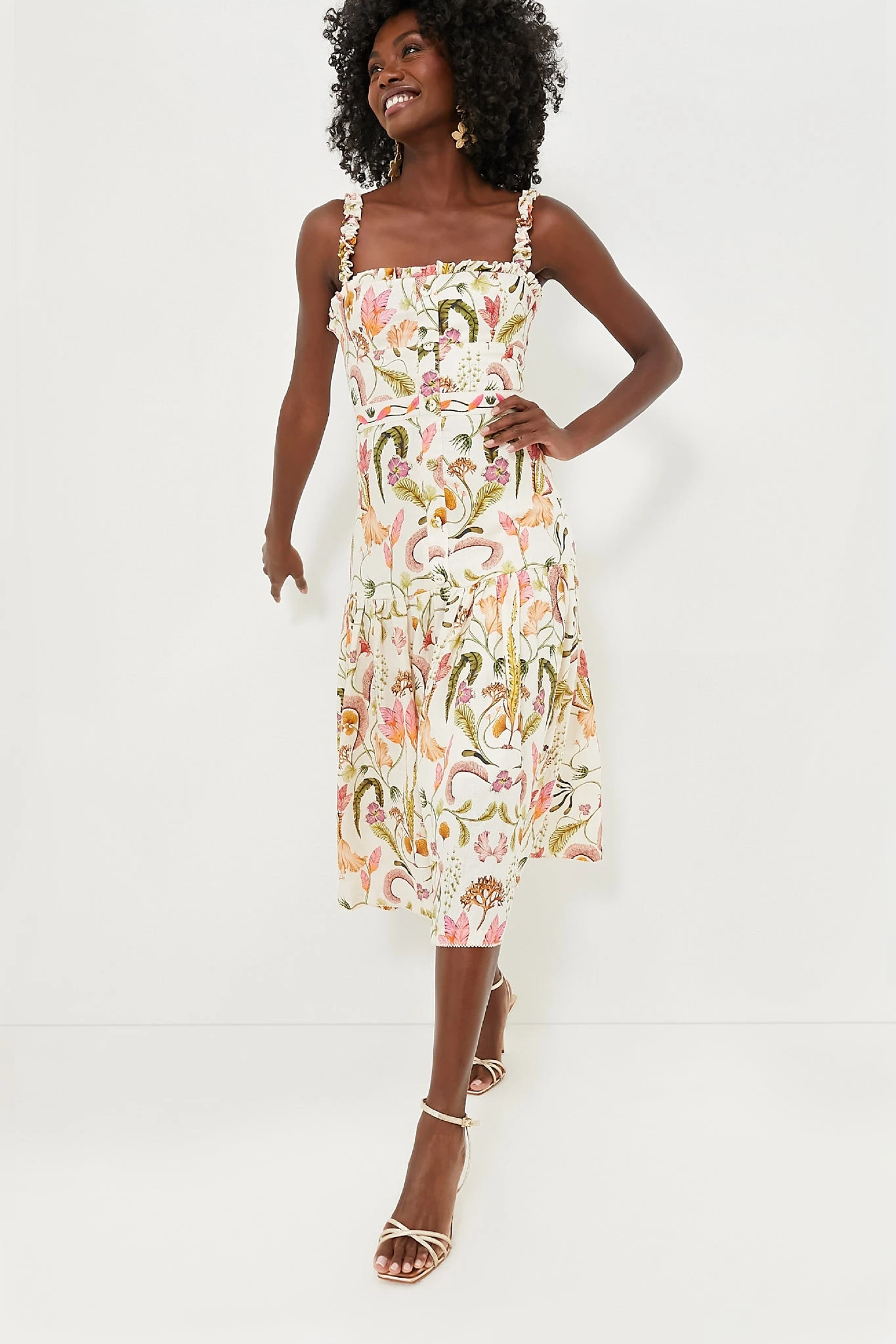 Fabulous flora abound on the Habitat Nispero Midi Dress. Made of airy linen, this effortless yet elevated silhouette is complete with special touches such as hand-embroidery at the waistband, ruffled trim at the neckline and straps, and covered buttons down the front. Not your average sundress, you’re sure to get plenty of compliments in this number whether you wear it with strappy sandals and gold hoops or with wedges and a clutch.