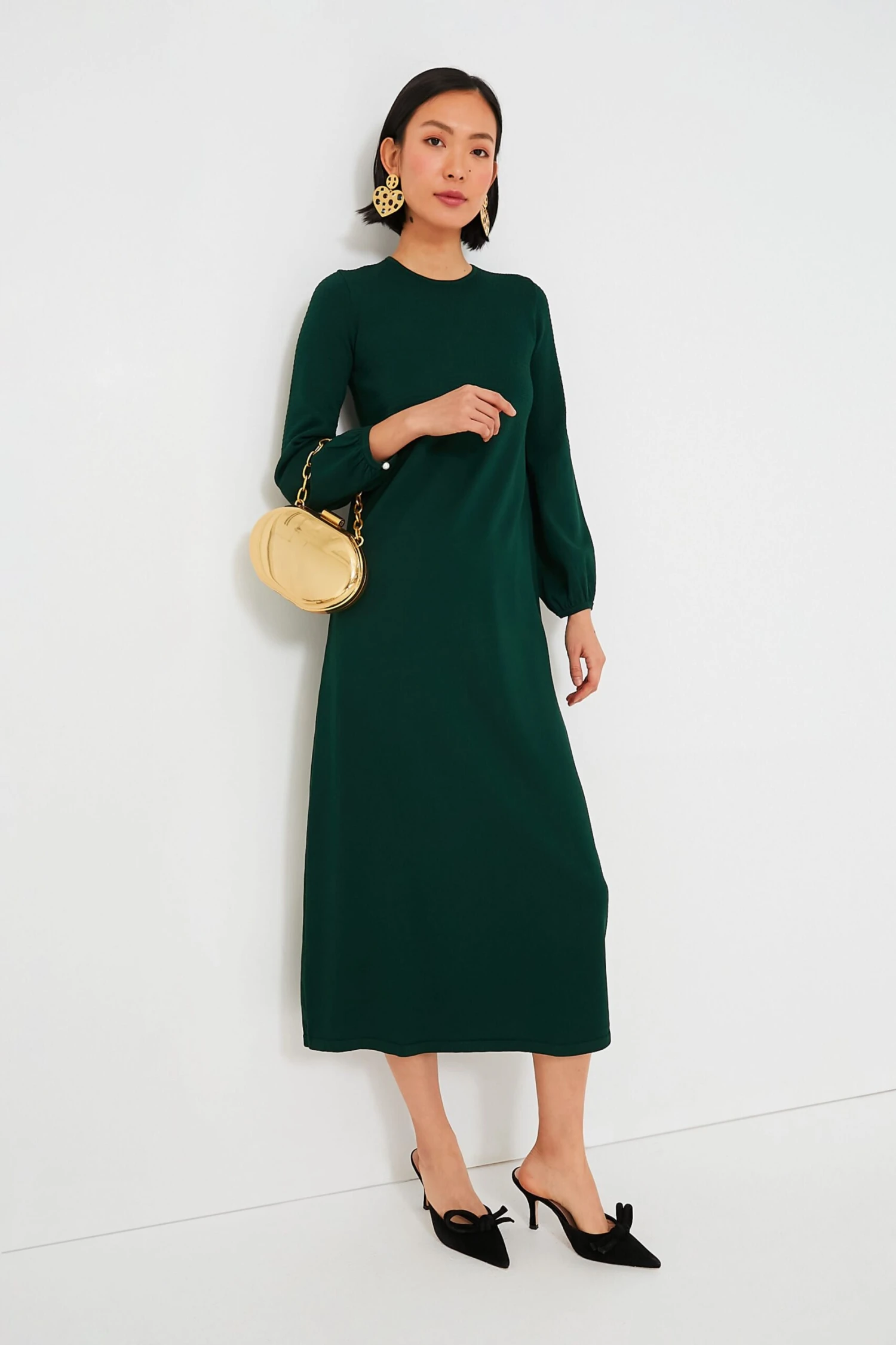 As cozy as a sweater and as chic as a dress, the Hunter Green Lennox will take you from clocking hours at the office to cocktail parties with a quick switch of accessories. Crafted from a double knit fabric that’s ultra slimming and even more comfortable, this minimalistic maxi is ready to be dressed up or down with its blouson sleeves and textured bodice details. Pair it with flats and gold hoops for effortless styling and a casual-cool vibe, or dress it up with heels and a clutch.