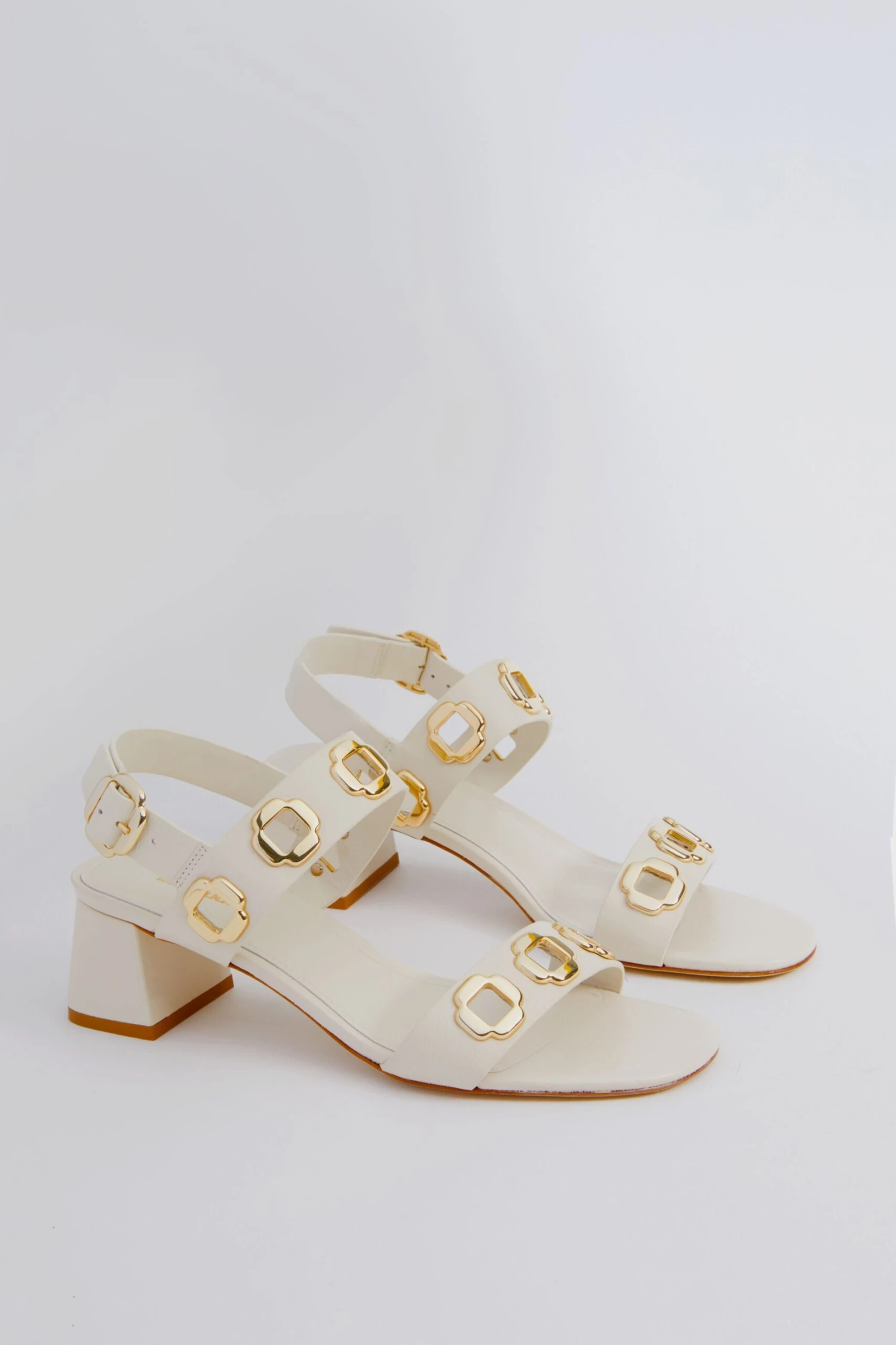 We never saw metal hardware we didn’t love and the Milan Heeled Sandals are no exception. With an iconic Italian look and feel, chunky chain details embellish the straps of this classic ivory leather shoe with the most durable and comfortable block heel for all day (and night) wear. Subtle enough to go with everything but still packing a punch, we are wearing these stunners with denim and dresses for al fresco dining all season long.