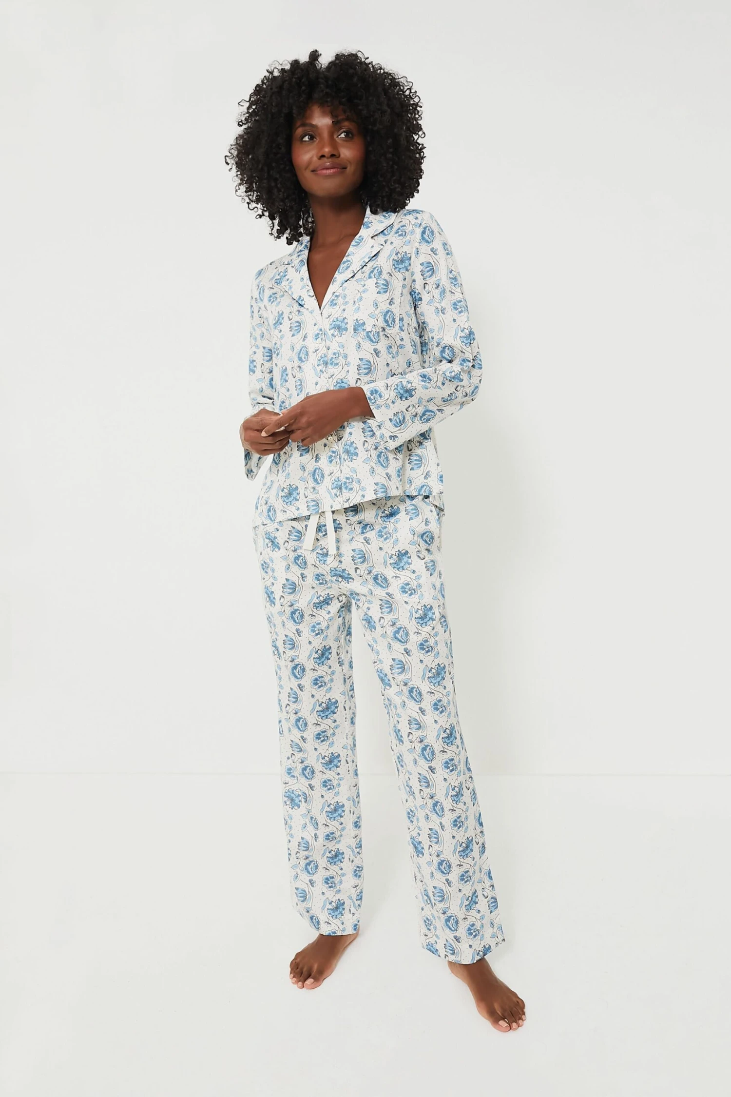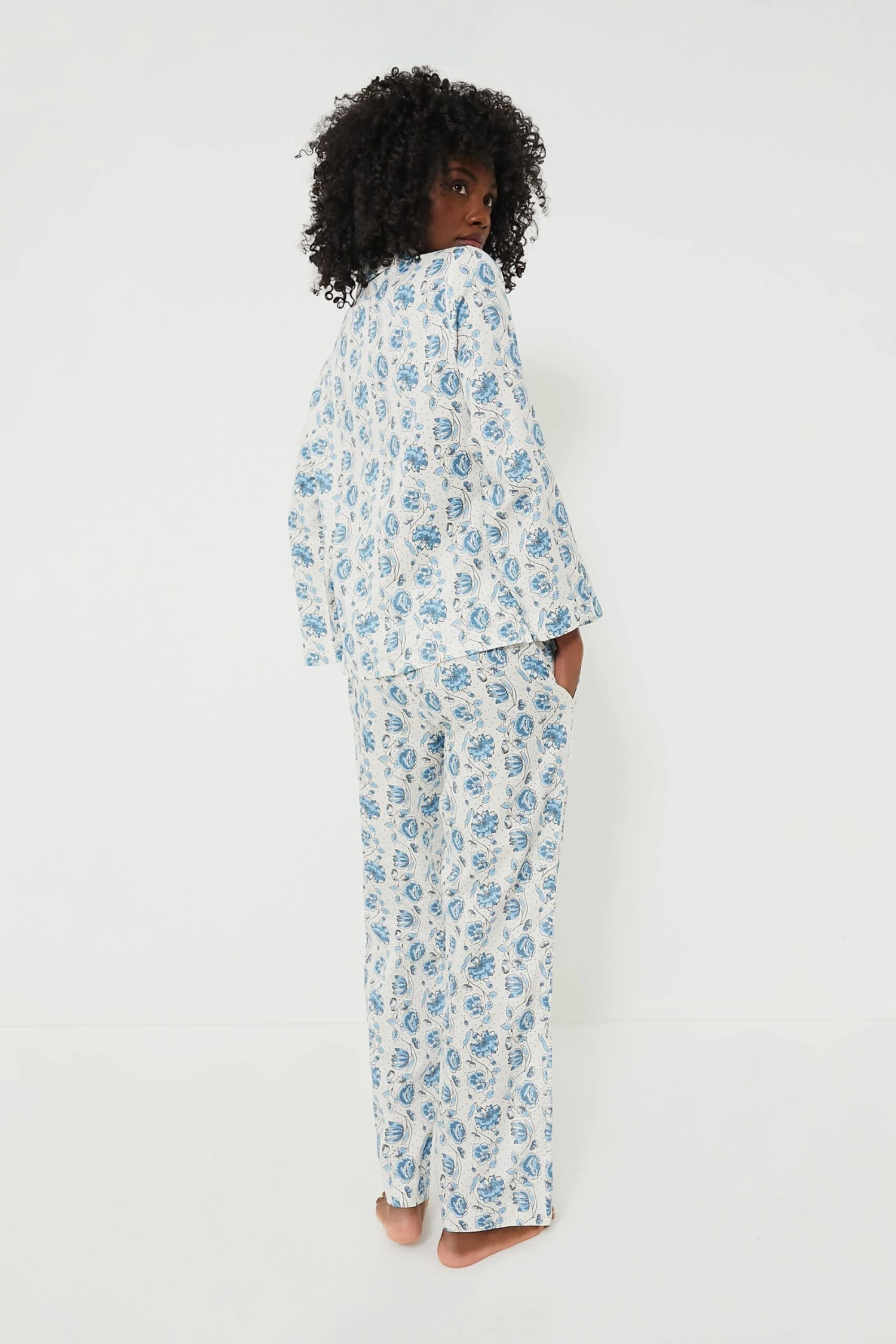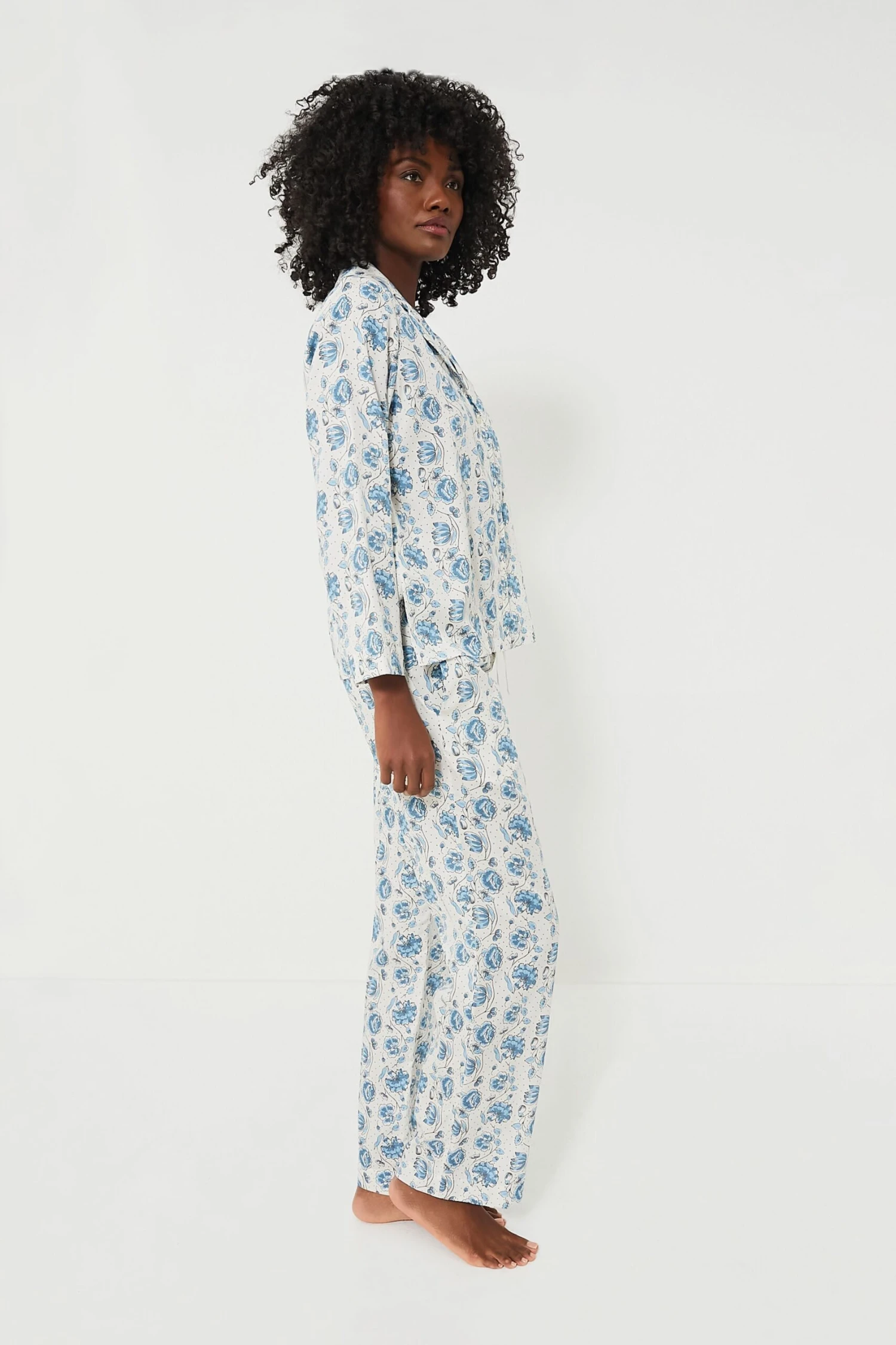 We couldn’t imagine a dreamier duo than you and the Joconde Long Pajama Set. Printed with garlands of flowers in shades of blue on a white background, this feminine style is crafted from French satin cotton that is thermal regulated and adapts to all seasons.A relaxed fit top with flexible elastic waist pants, – this pajama set is a no brainer!  Â