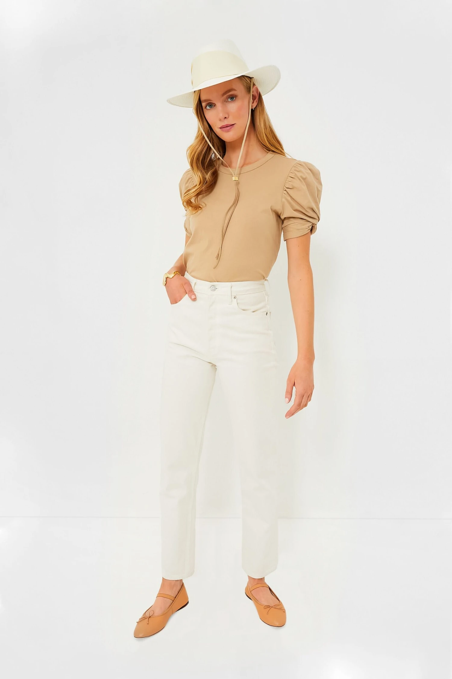 Live out your ballerina dreams (in way more comfortable shoes) with the Leonie Soft Ballet Flat. Crafted from lamb leather with a cow leather sole, these shoes are a must-have. We are pairing these flats with denim and a feminine blouse for brunch with friends!