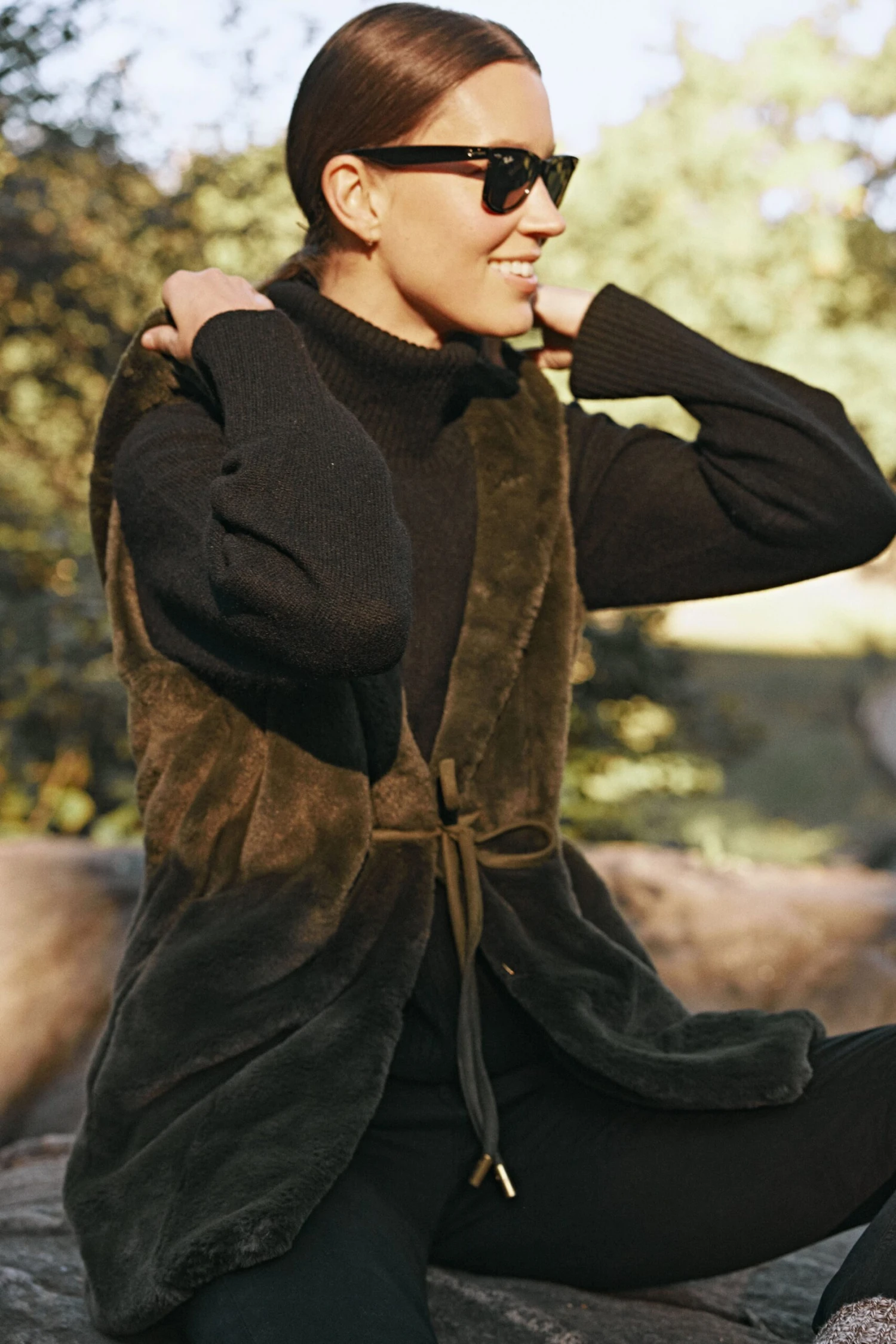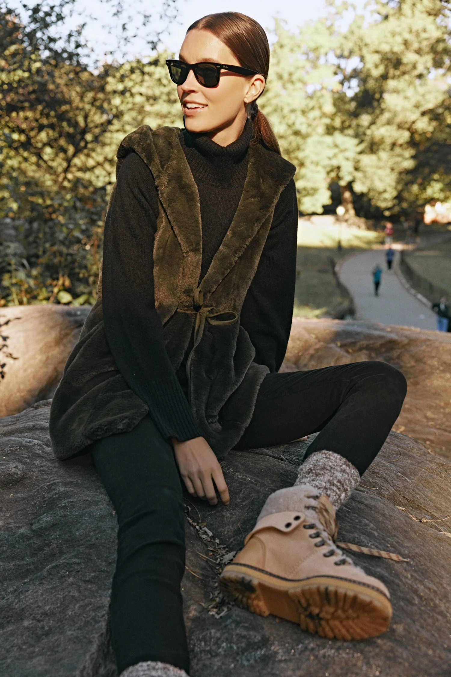 Looking to elevate your cold weather wardrobe? The Moss Green Faux Fur Bayker Vest is a no-brainer — it’s warm and cozy while remaining chic as ever. With an attached hood, an adjustable drawstring waist to cinch it to a perfect fit, and side seam pockets for added functionality, you’ll be wearing this all over town. Layer it over a long sleeve tee or a turtleneck sweater for a cool yet comfortable look.
