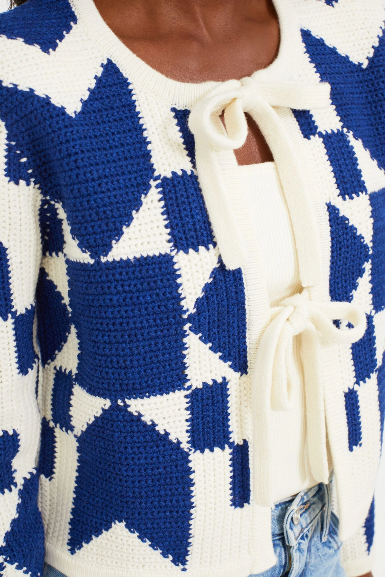 The Multi Anais Crochet Cardigan is one of our very favorite knit pieces this season. Crafted from super fine Merino wool, this long sleeve sweater has gorgeous details that you are sure to love –  a playful geometric design with tie-front closure. Style this timeless style with any color of denim and a pair of sneakers for an effortless chic look, or throw it over a dress with heels and clutch for a look that’s sure to earn some compliments.