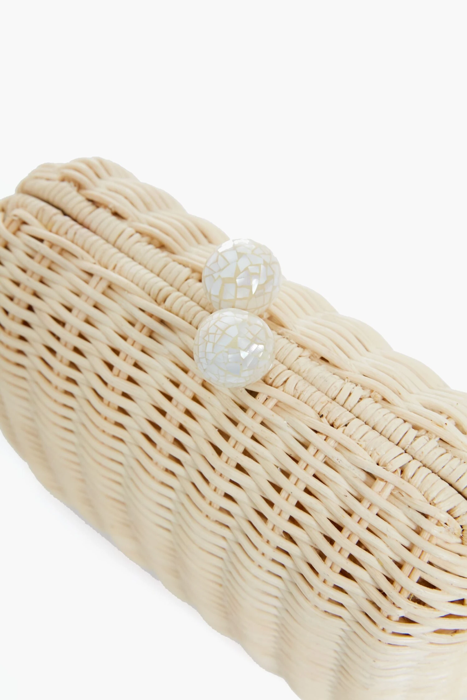 Elevate your wardrobe with this Natural Grace Clutch. Featuring all natural shell clasps for a touch of subtle shine, each bag is handmade using a traditional Filipino basketweaving technique that results in a unique and timeless accessory. Pair this woven rattan number with a printed mini for brunch and with relaxed denim for a casual happy hour.Â