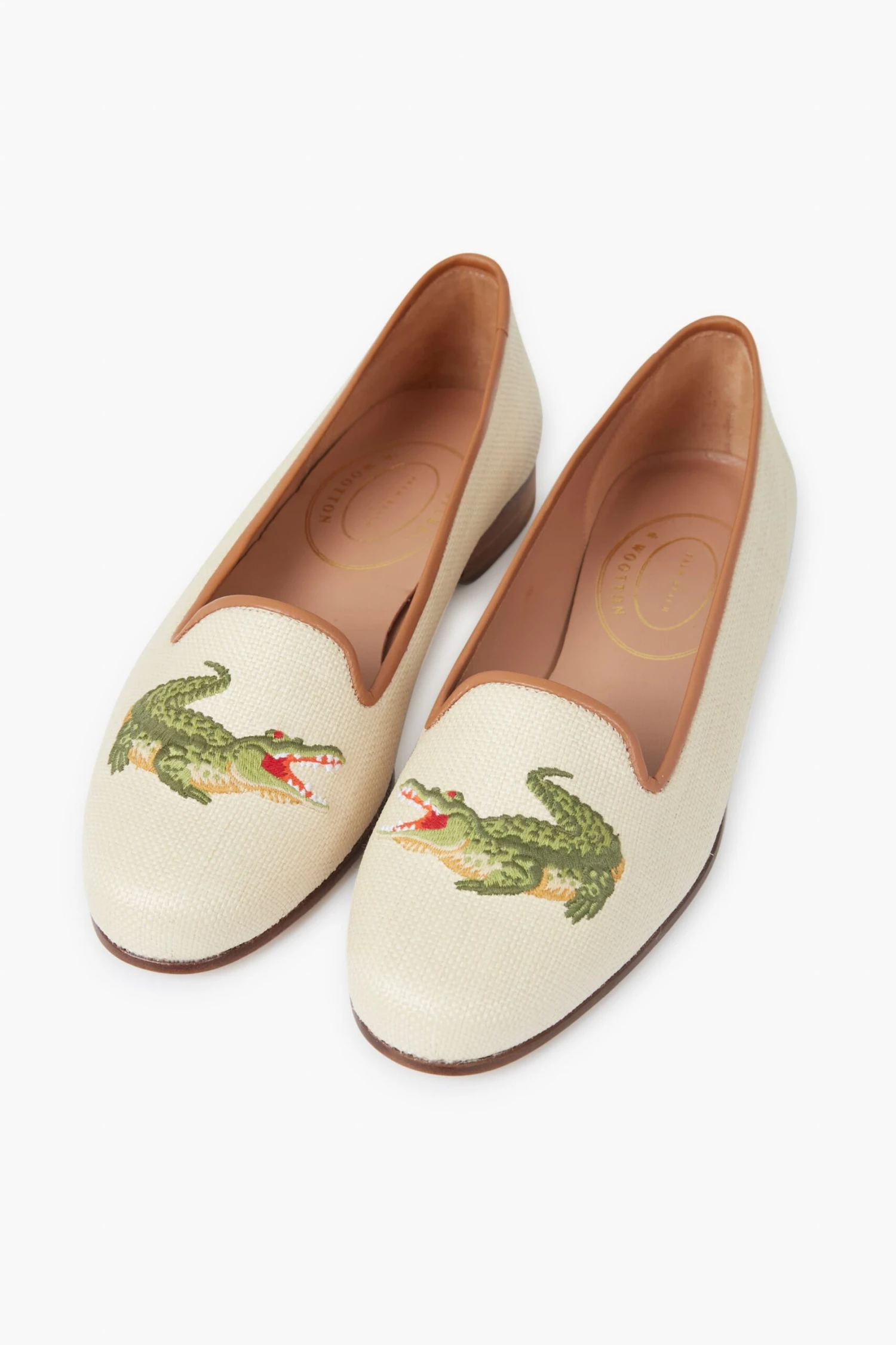 See you later alligator! These slippers feature a reptilian motif atop a woven Panama straw upper with a luxe natural nappa leather trim. We love these for a timeless yet fun shoe option for days in the office, lowkey get-togethers, and sunny lunches alike. Just add a neutral top and denim, then let these unique shoes do all the talking!