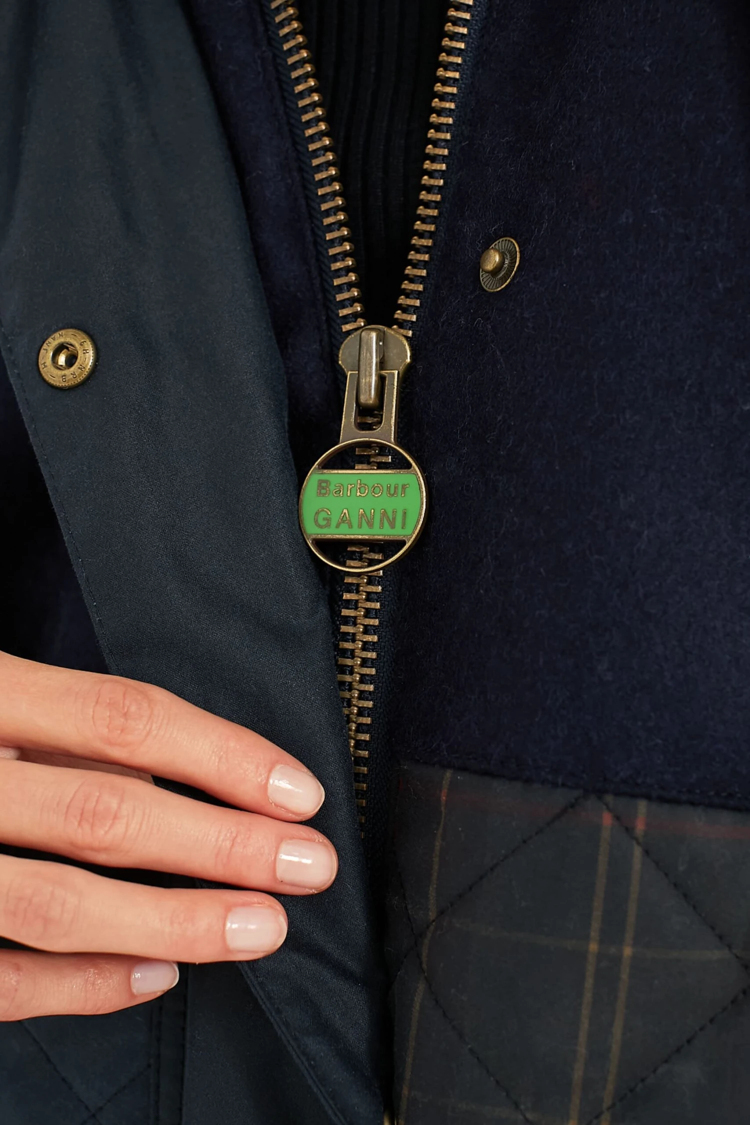 The Burghley Jacket is a seamless blend of both brand’s personalities, creating a special silhouette that’s entirely its own. With a longline shape for ultimate warmth, this design has been crafted from the classic waxed cotton that Barbour is renowned for with the classic tartan lining that is an ode to Barbour’s roots. With an oversized dual-branded logo and an exaggerated cord collar, this piece is finished with the perfect expression of GANNI’s free-spirited aesthetic.