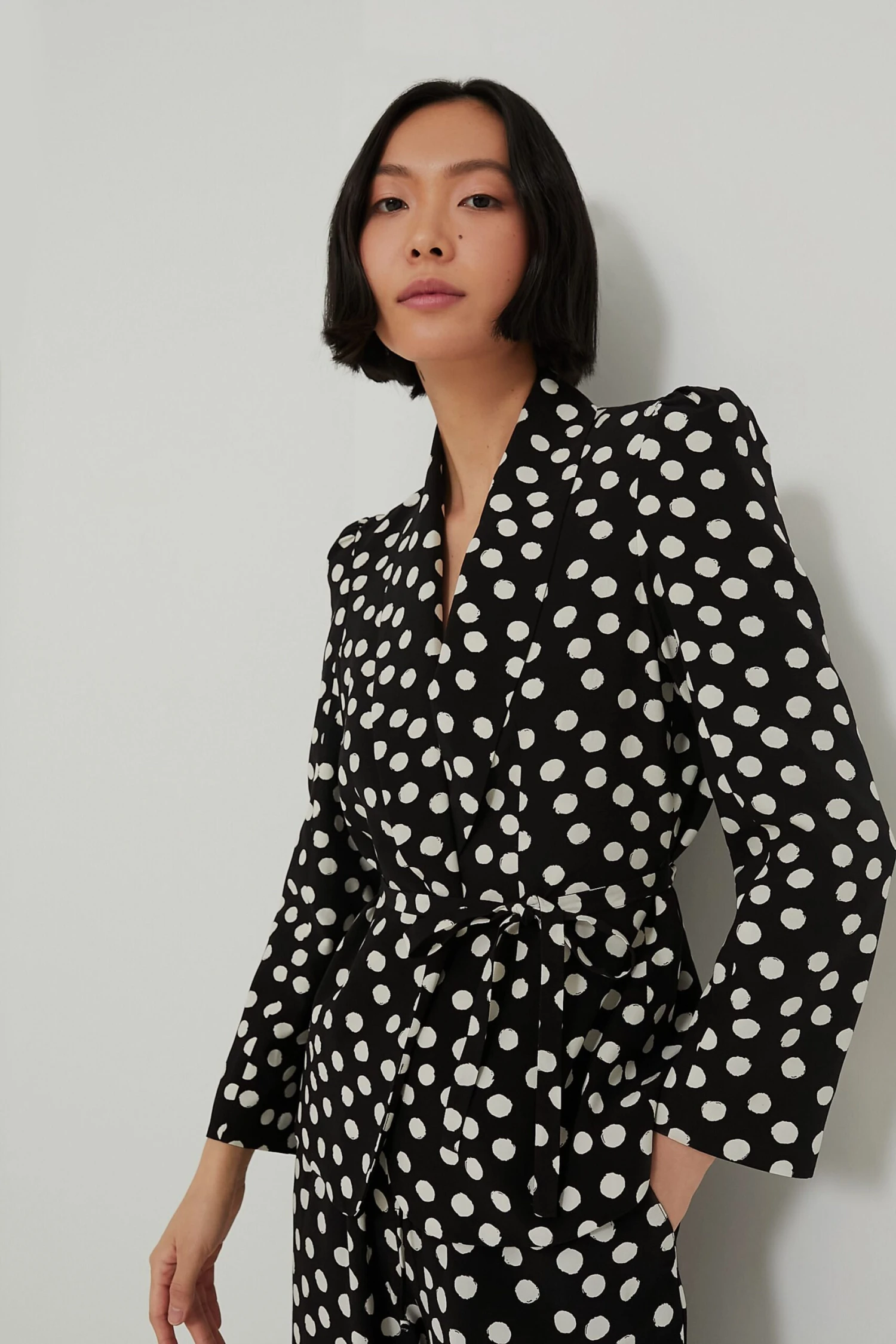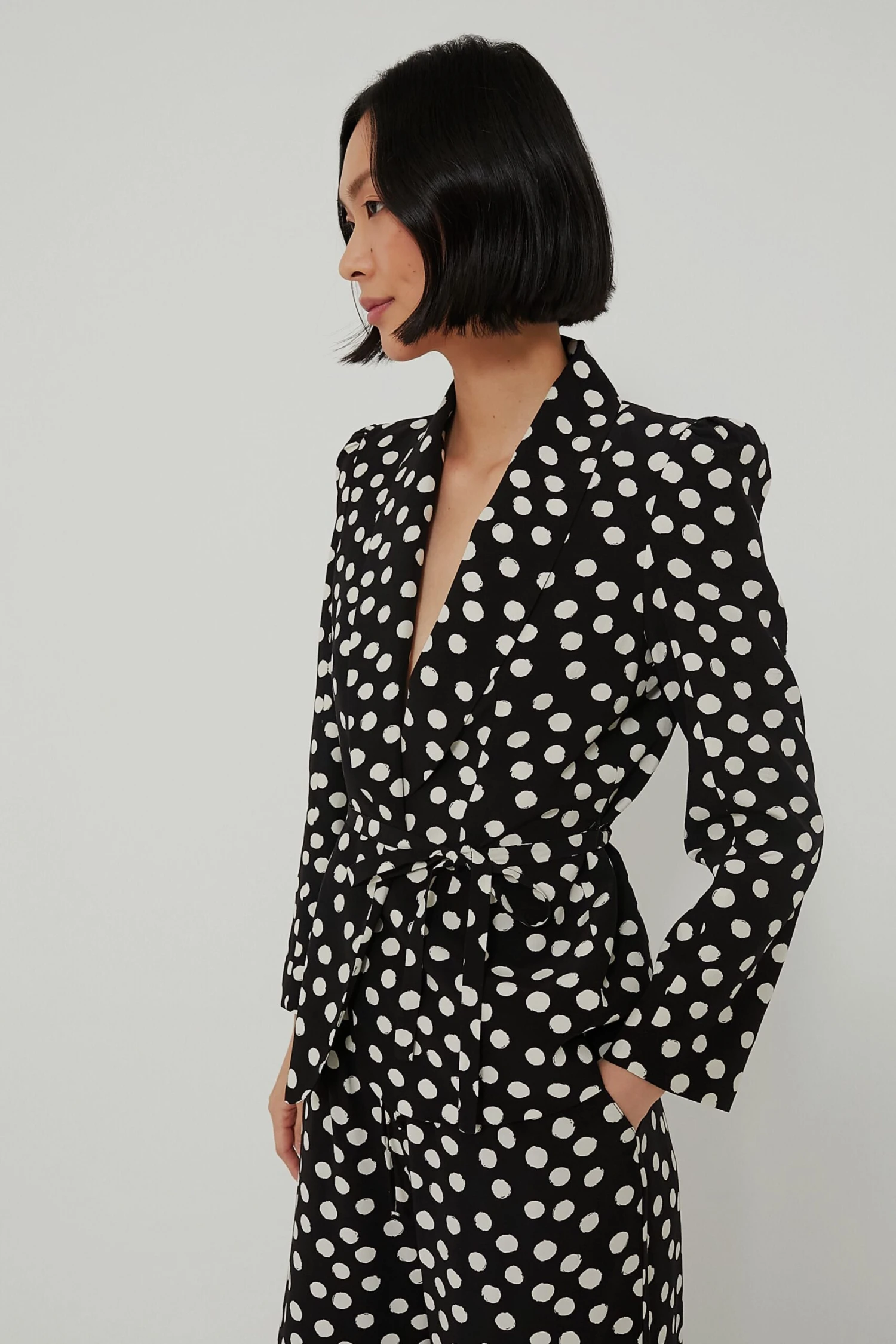 Power dressing but make it fun! The Painterly Dots Black Paris Jacket boasts a shawl collar, removable waist sash and puff shoulder making them the perfect style for work and play. We love styling it with the matching Black Sharon Pants for a polished coordinating look, or pair it with denim and your best heels for a chic date night ensemble.