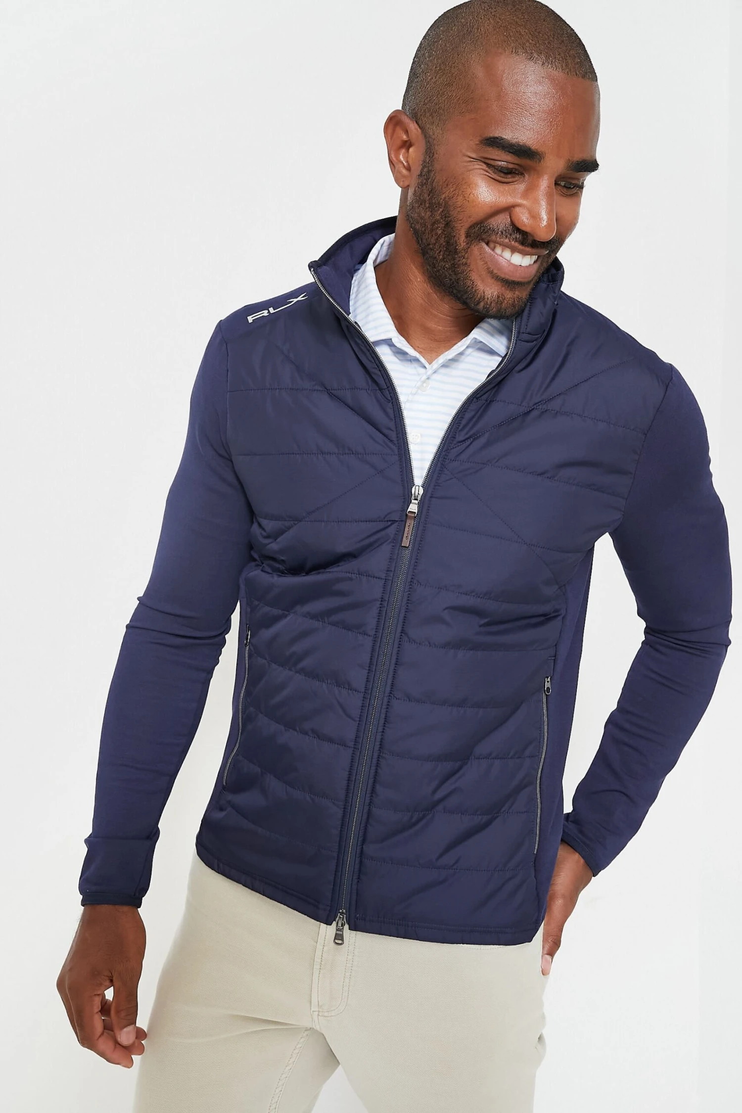 The Performance Wool Quilted Full-Zip Jacket is crafted with French terry fabric that contains breathable wool and stretch fibers for enhanced comfort. At the front, it features an insulated ripstop panel for added warmth. Made to keep you cozy, looking good, and performing your best, this elevated outer layer is a must-have.