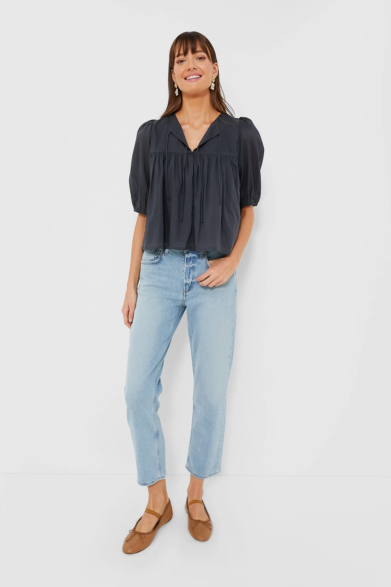 A well-loved silhouette season after season, the Organic Puff Isla Top is back in a chic new Polar Night colorway! Crafted from cotton for a breezy feel and a beautiful drape, this darling blouse features a split neckline that can be tied closed or left open for a sultry touch. Finished with puff sleeves, this style is effortlessly feminine, and sure to be worn on repeat. Pair it with denim and flats for an easy yet elevated look!