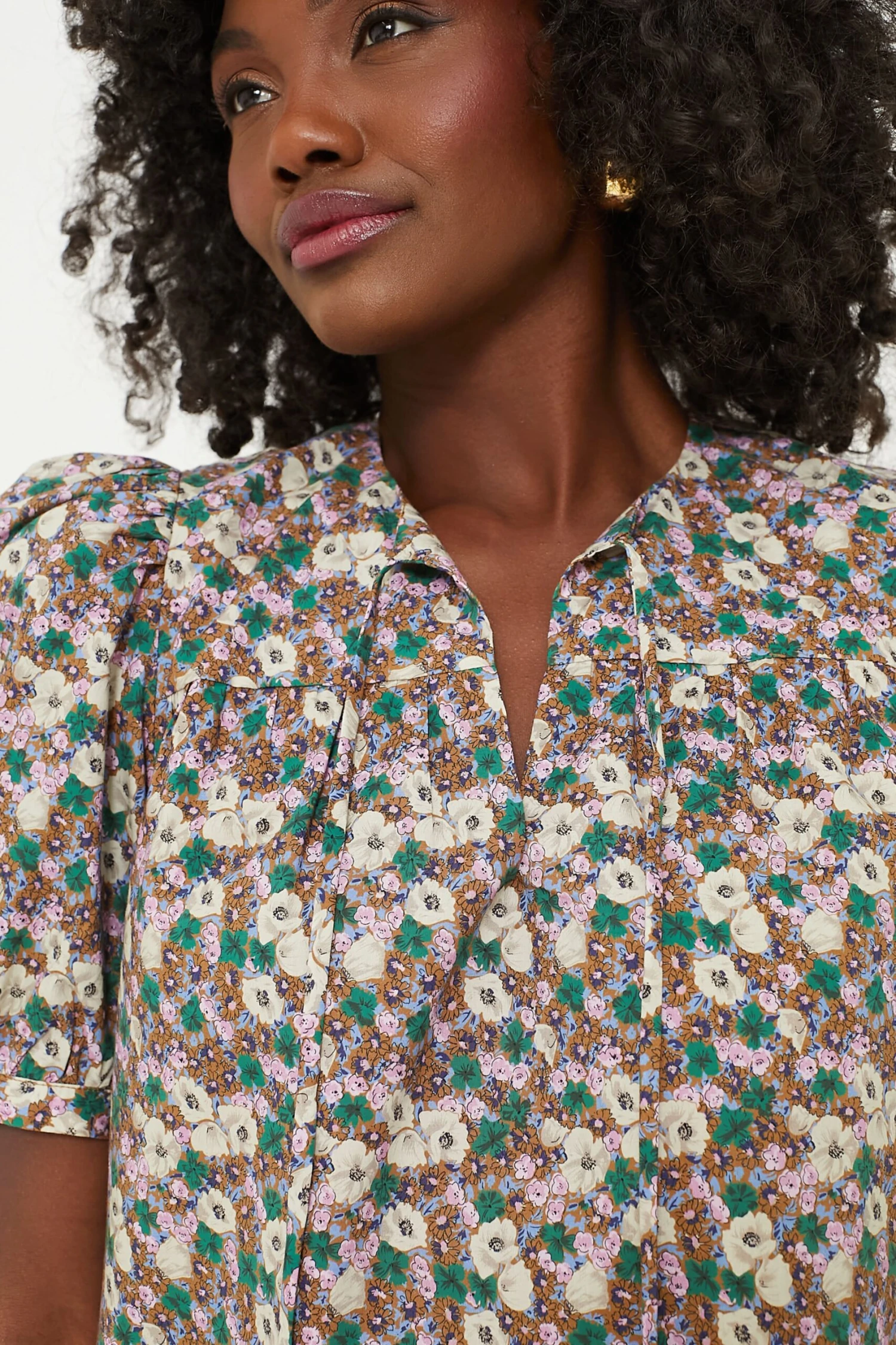The Purple Multi Floral Petunia Blouse is a perfect style to carry you from weekdays to weekends. A straight silhouette that boasts short sleeves with shirring around the shoulders, a V-neck with a self-tie, and a ditsy floral pattern, this feminine beauty can easily be dressed up or down. Pair with denim shorts and sneakers for a casual lunch date, or with dark denim and ballet flats for work meetings.