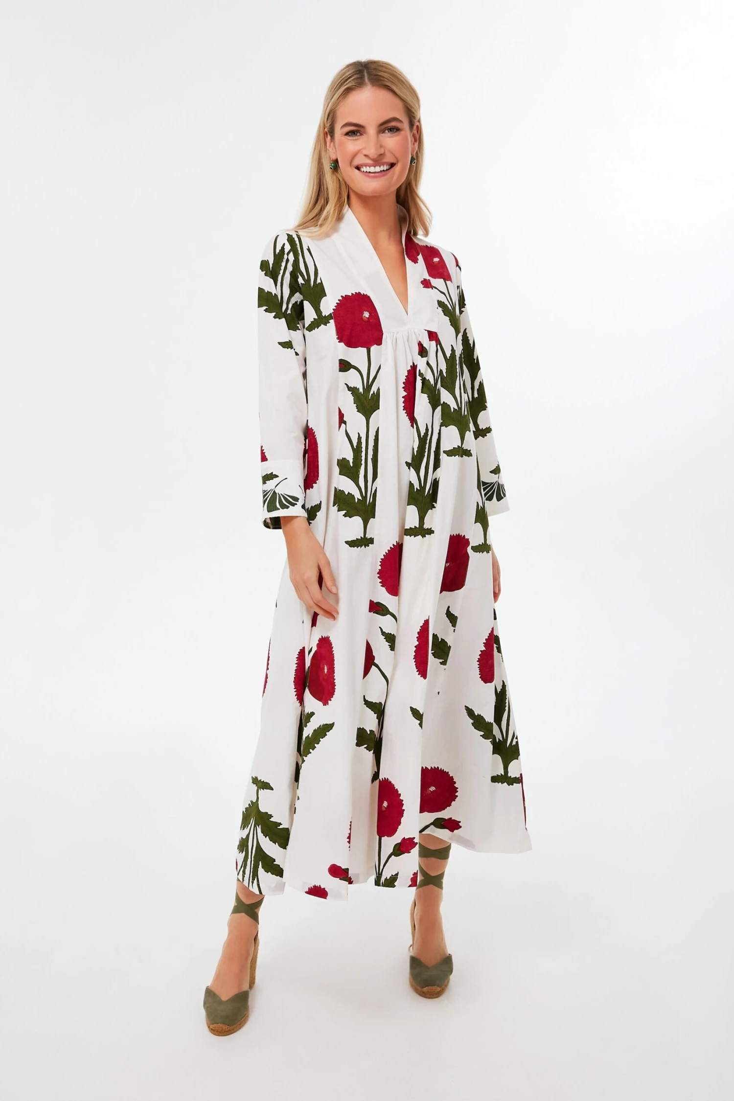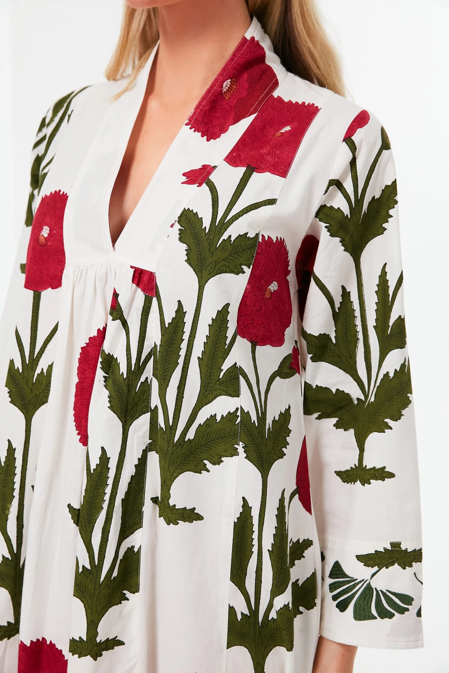 Full of fresh blooms, the Red Poppy Krait Kaftan is effortlessly breezy and oh-so-charming. A subtle flare at the skirt makes this number twirl-worthy, while a V-neckline and bracelet length sleeves bring a timeless element that allow this style to live in your closet for years to come. Pair this number with espadrilles and a clutch for sunny brunches, or over a swimsuit with a tote for beach days.