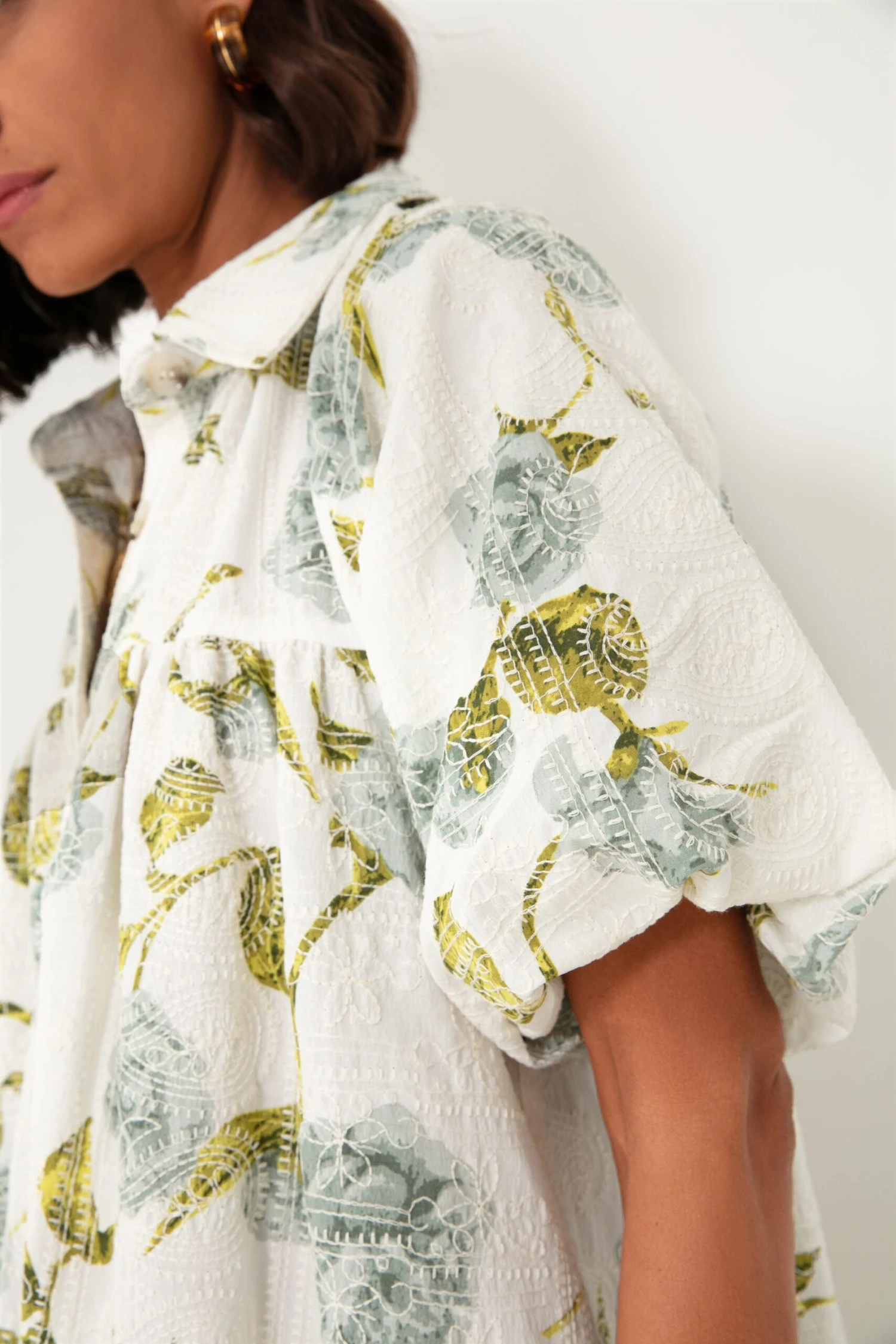 Effortless yet elegant, the Sage Blue Jayla is perfect for sunny days where a lightweight frock comes in handy. Delightful sage blooms adorn this mini shirtdress that features a spread collar, short balloon sleeves, and a flouncy skirt. If you are in need of a new staple silhouette for your closet, this is the one — pair it with raffia sandals and a sunhat for a garden party, or with sneakers and sunnies for weekend brunch!