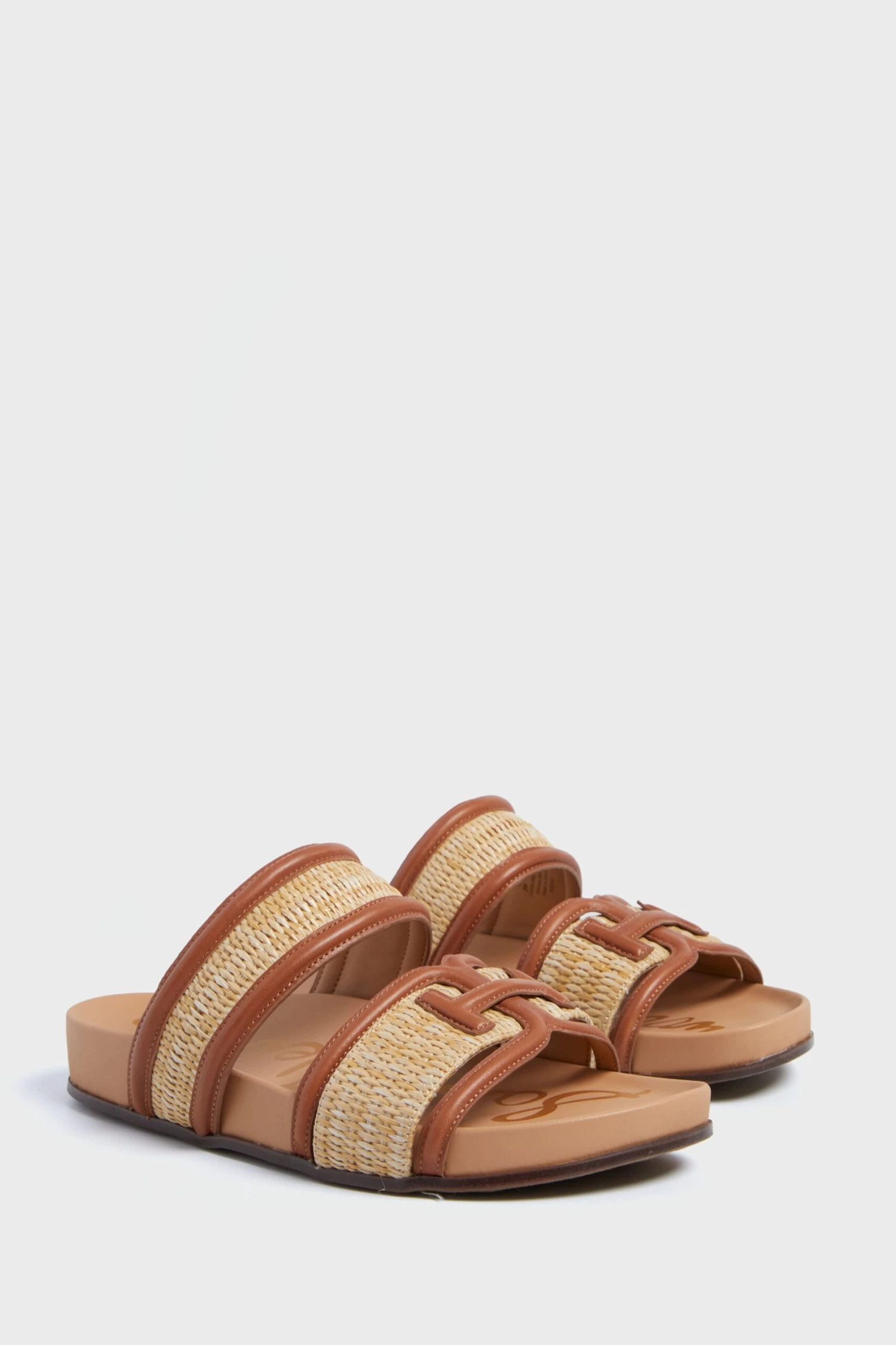 Go beyond the beach with the Natural Rich Cognac Rowan Sandals. These city savvy double-banded basketweave slides include chunky piped trim and bit detail. Throw on with denim and a blouse for browsing the farmers market, or with a maxi dress and crossbody for going to coffee with friends.