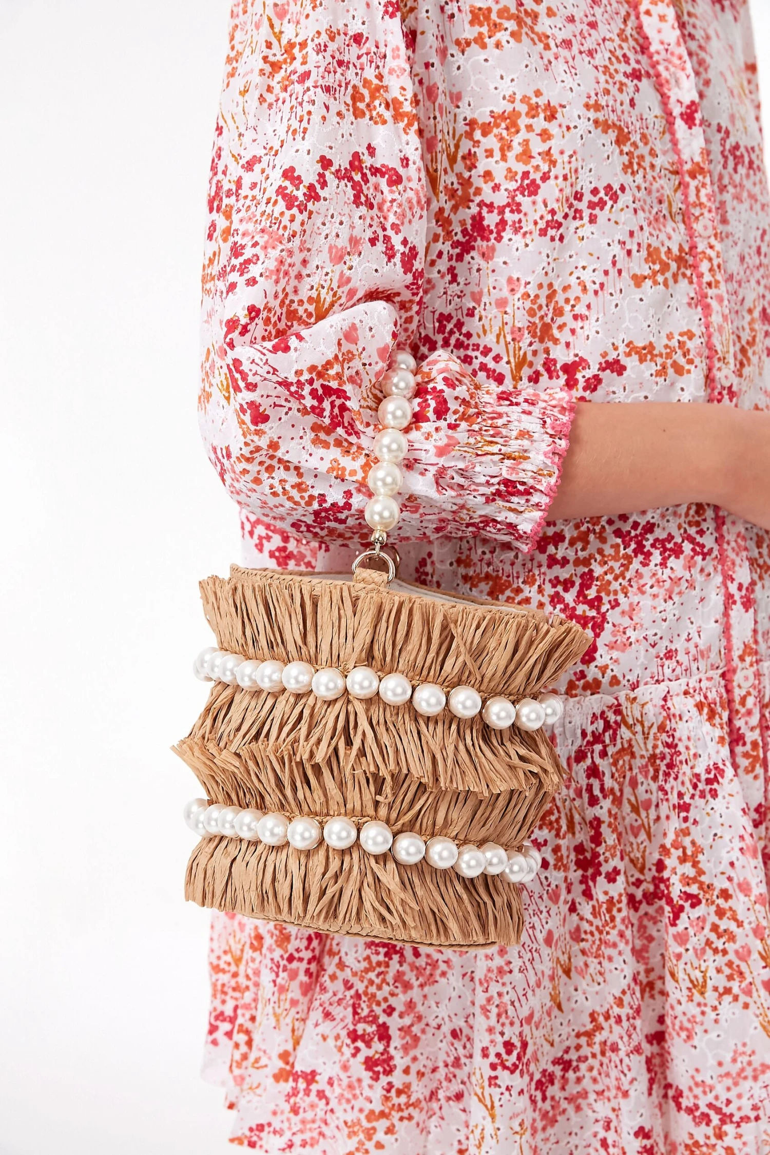 - Material: Straw (outer), Linen (lining), Imitation pearls