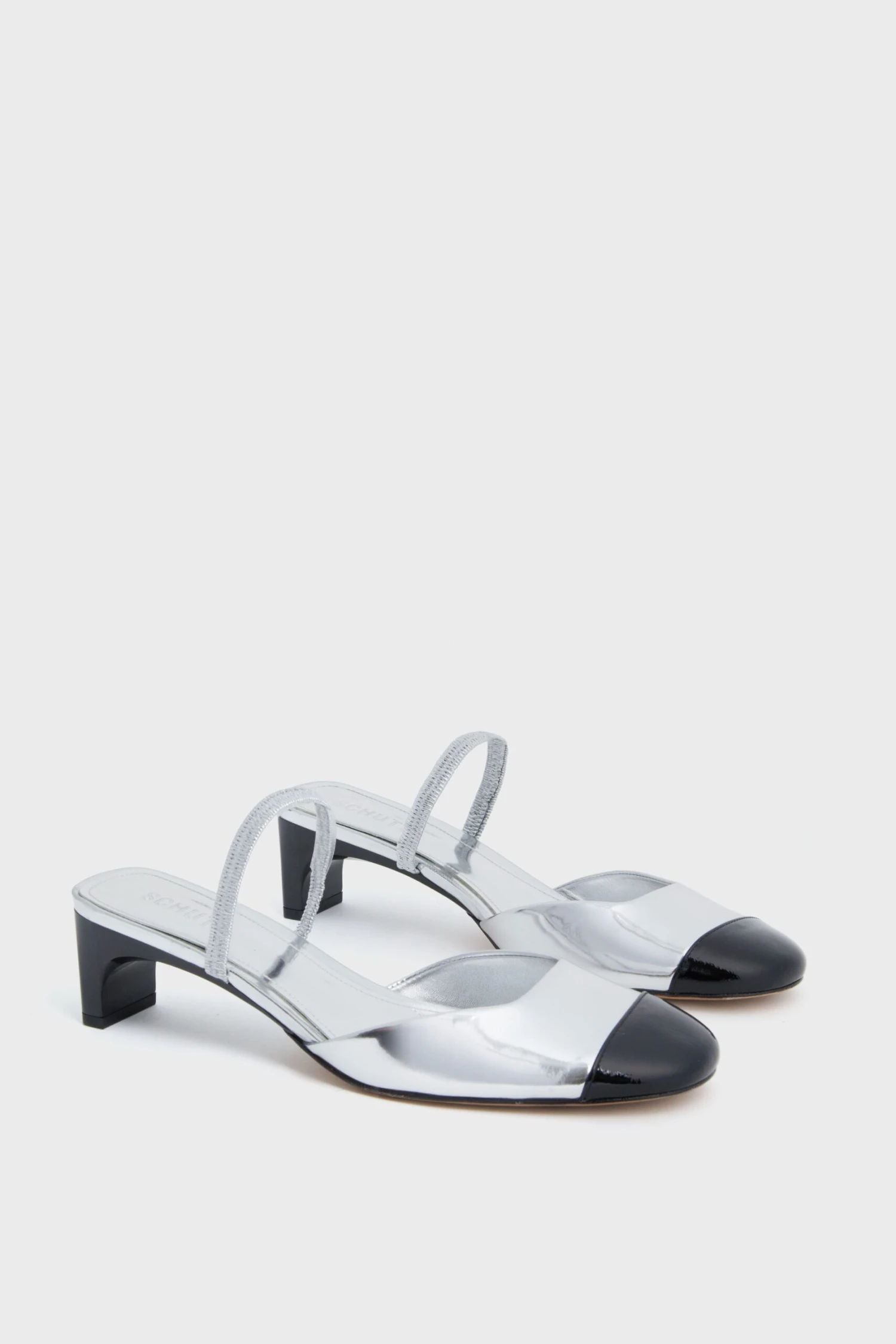 There are few shoe silhouettes more chic than a classic cap toe style. The Preto Bertie Heels combine that timeless look with a hint of fun in the form of a metallic silver composition that is absolutely party-ready. Add a slim kitten heel that is easy to dance the night away in, and an elasticated upper strap for a comfortable fit, and you’ve got the perfect pair to wear with event dresses, dark denim, mini skirts, and more.