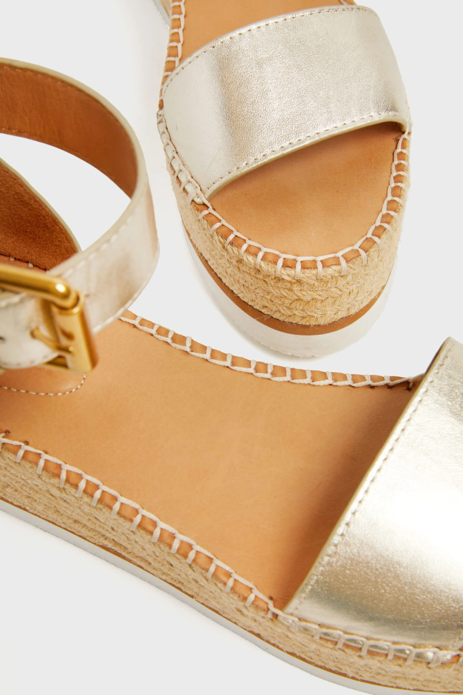 Elevate your summer shoes to the max with the fresh and fun Light Gold Glyn Sandals. With a toe strap and ankle strap with buckle closure for security, as well as a platform jute-wrapped heel, these stunning espadrilles will bring the drama to any outfit. Comfortable enough to wear from day to night, we love to pair these with flowing dresses for dinner al fresco or with linen pants to grab a paloma at the resort.