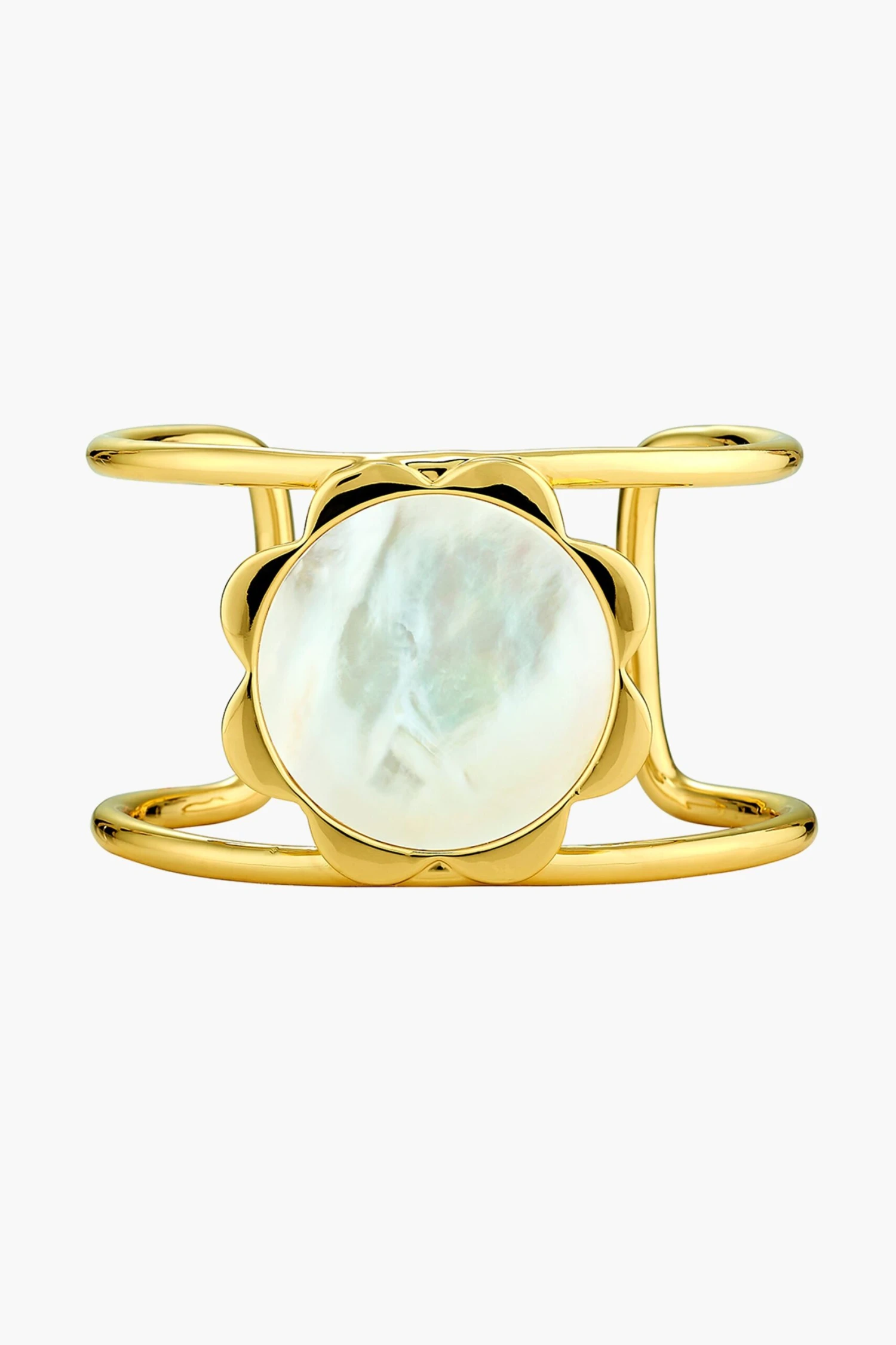 A big and bold bloom is the focal point of the Small Flower Cuff. Perfect for wearing with a simple outfit to make a statement and let your jewelry do the talking, we love the mother of pearl touches that adorn this bracelet. Style it with an LBD for drinks and a night out with your besties, or with a flowing maxi to attend events and weddings!