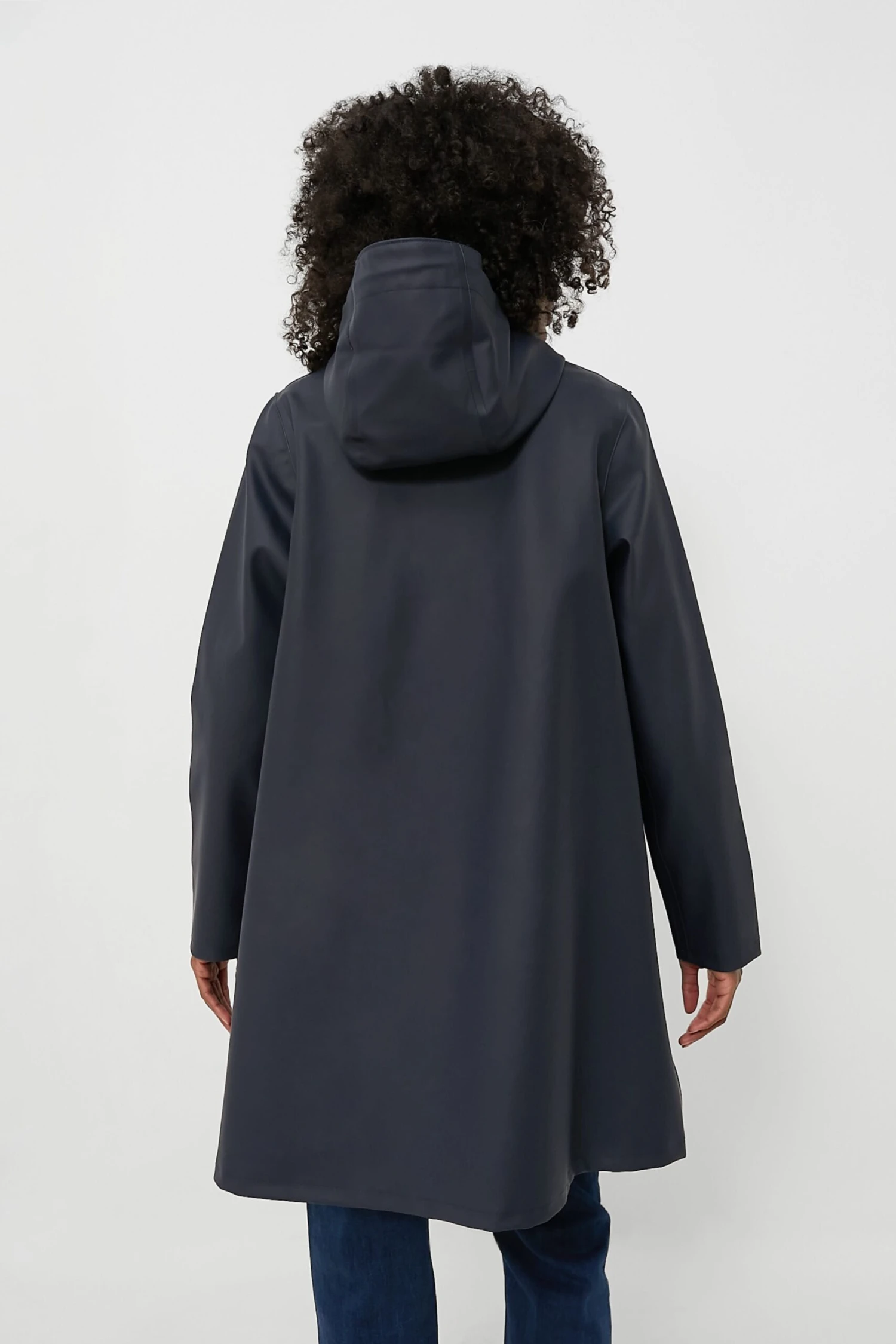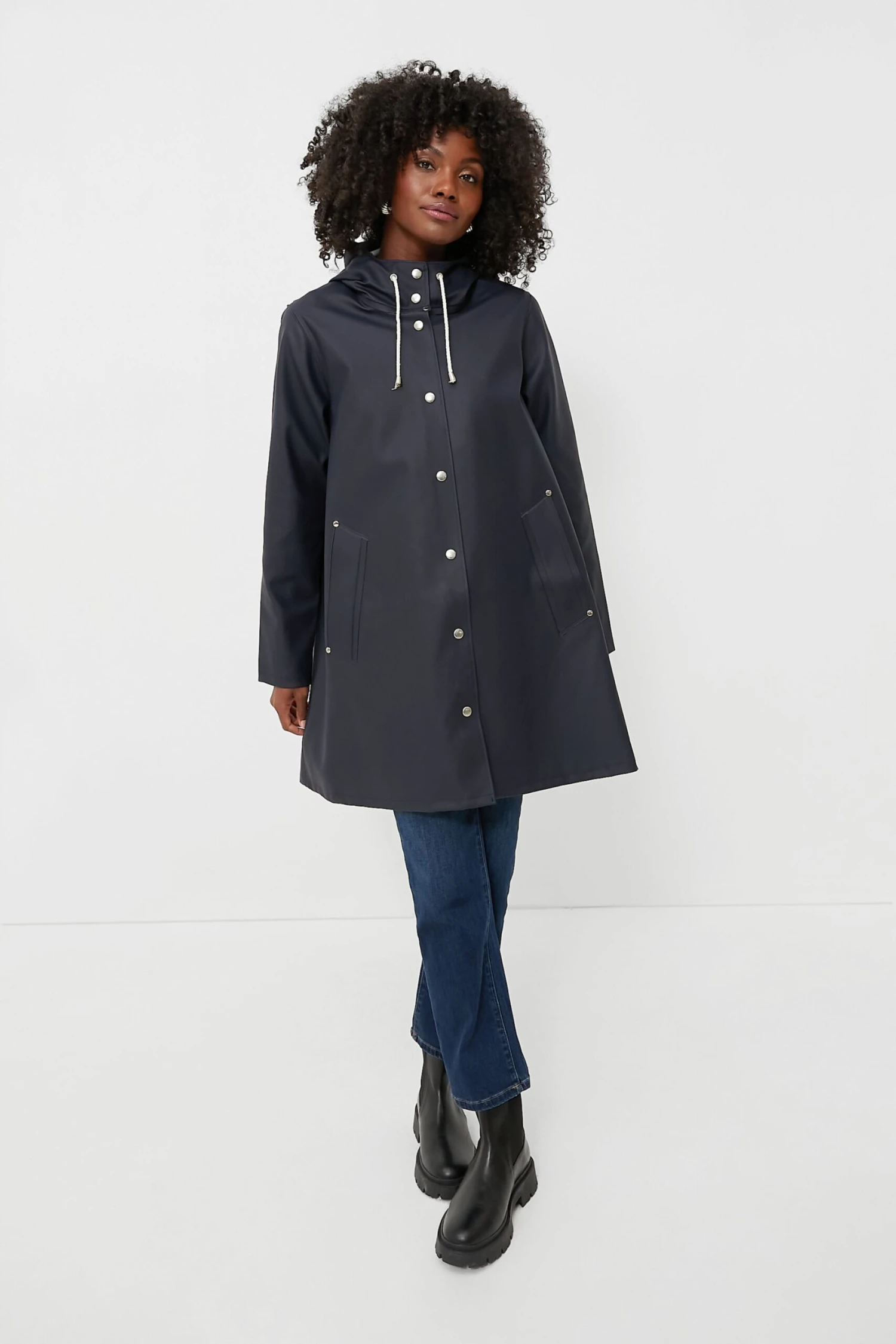 With feminine style in an A-line silhouette, the Navy Mosebacke Jacket is still your go-to, year-round raincoat. With 100% rainproof rubberized cotton, double-welded seams, and snap metal closures, you’ll be protected from the elements without sacrificing style. A drawstring hood, front welt pockets, and under-arm eyelets allow for ventilation so you won’t overheat. In a relaxed fit with a minimalist look, you’ll constantly be grabbing for this functional number all season long.